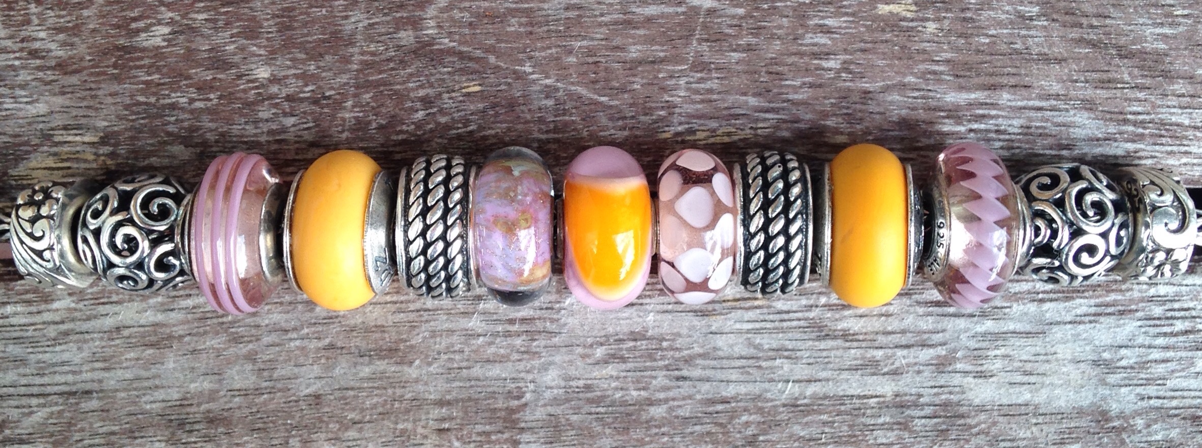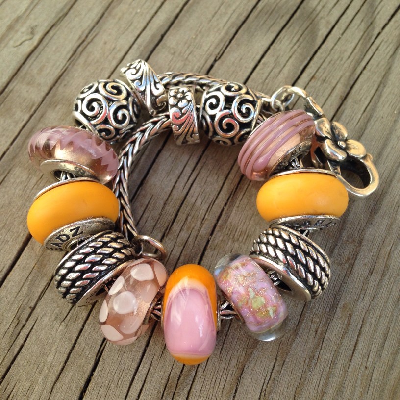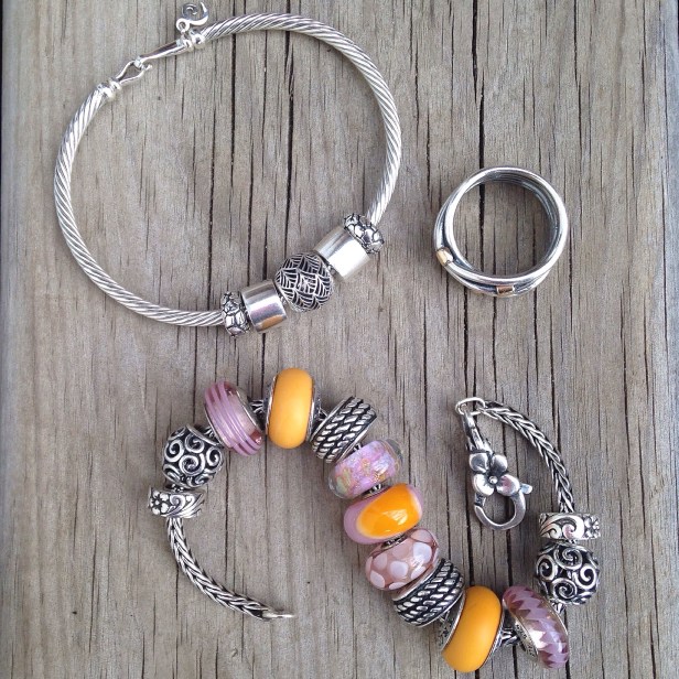 Jewelry Soft Colours Date: September 26, 2015Author: Martha 0 Comments Today I have on the Ohm Beads Twisted Bangle, a Pandora ring and a mishmash bracelet of soft pinks and orange. Stoppers and 4/8 by Redbalifrog 1/2/10/11 by Pandora 3/9 by True Beadz (True Touch Pumpkin) 5/6/7 by Trollbeads Like Loading... Related