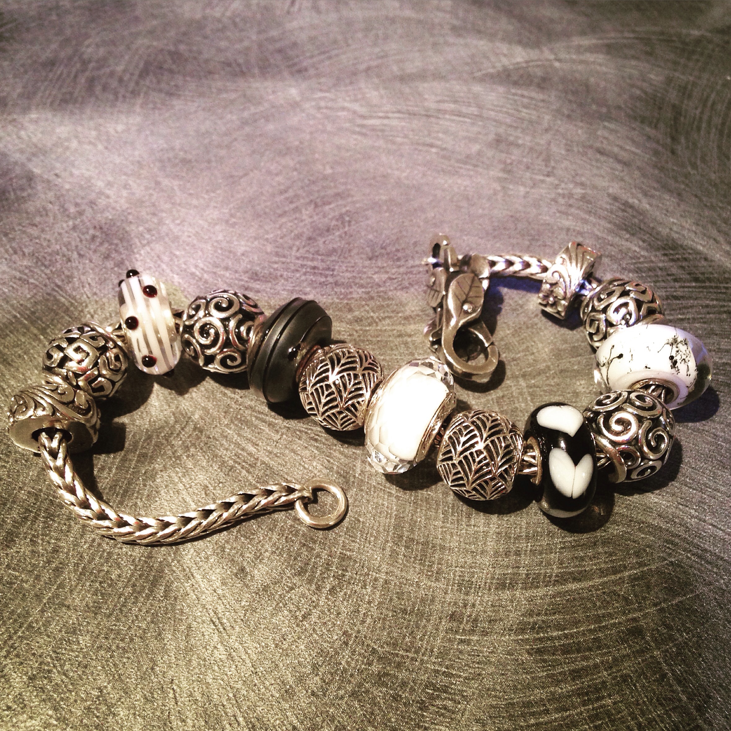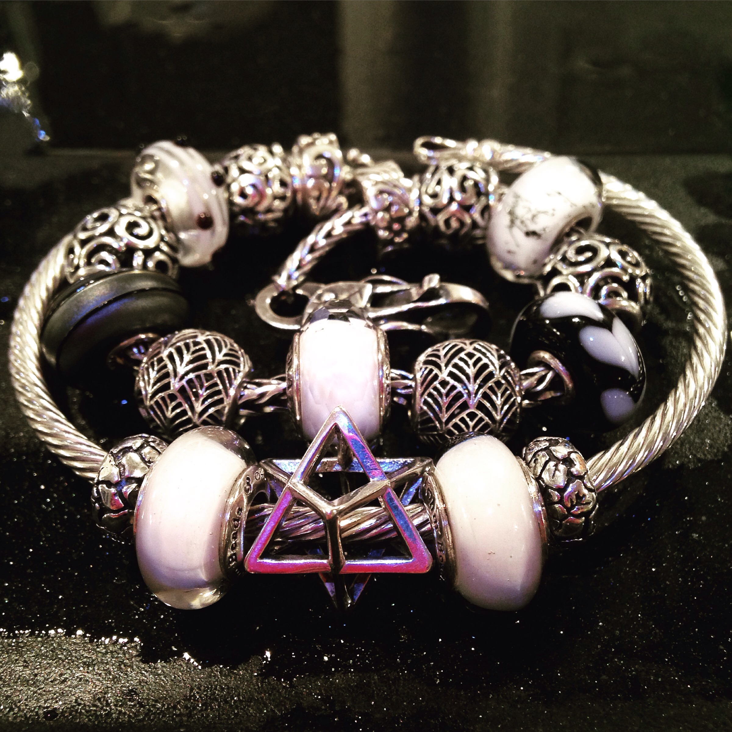 Jewelry Black and White Date: September 28, 2015Author: Martha 0 Comments Below is the Ohm Beads Twisted Bangle, Earth-ish Stoppers, Cold Milk beads and Merkaba. Beads on the bracelet– Stoppers by Redbalifrog All silvers and middle glass are by Pandora Other glass beads and lock are by Trollbeads. Share this: Click to share on Facebook (Opens in new window) Facebook Click to share on Pinterest (Opens in new window) Pinterest Click to share on WhatsApp (Opens in new window) WhatsApp Click to share on X (Opens in new window) X Click to email a link to a friend (Opens in new window) Email Click to share on Tumblr (Opens in new window) Tumblr Like Loading... Related