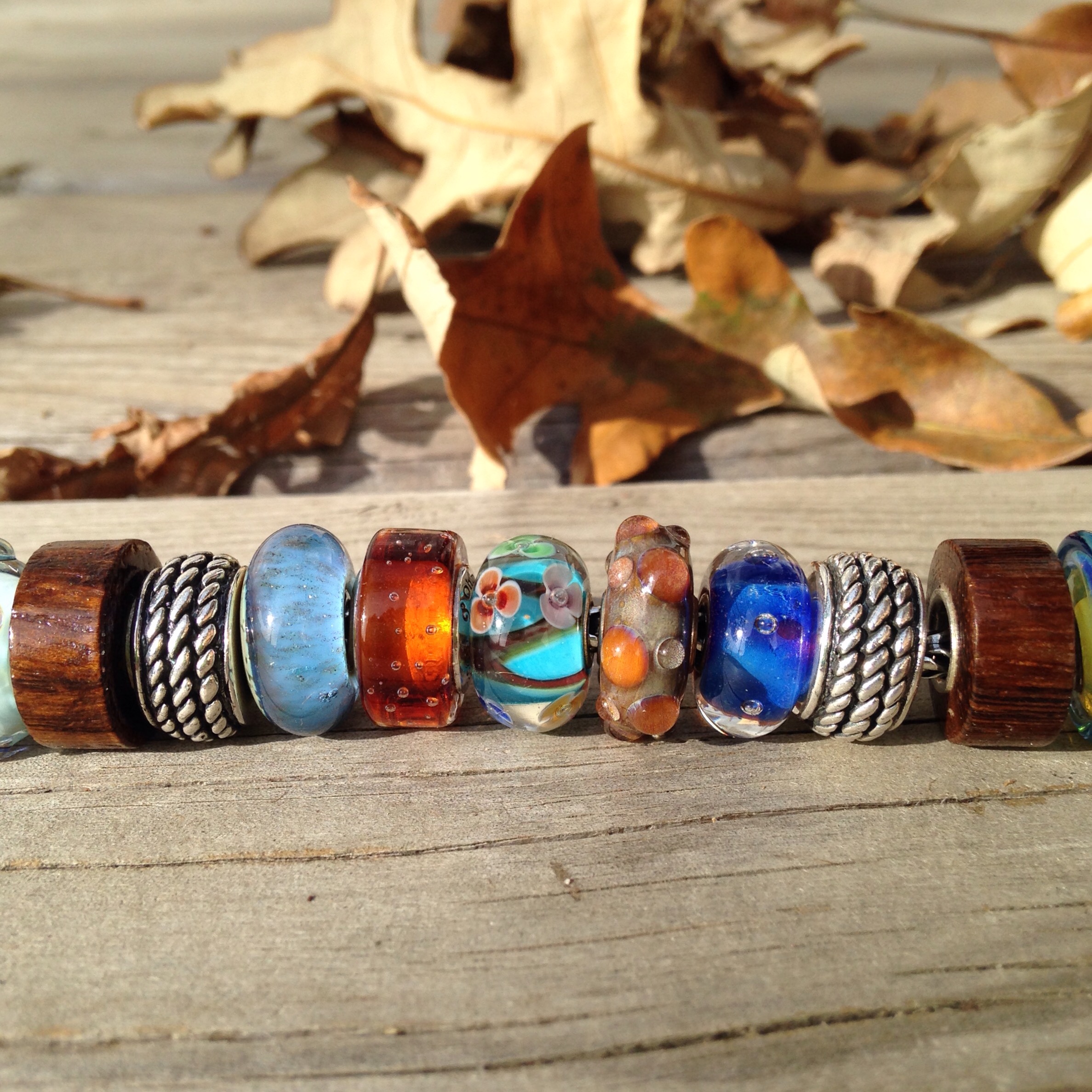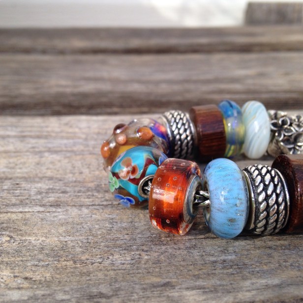 I love Bar Brawl by Ohm Beads so much, so I’m trying to find different ways to use it. It’s the rich amber coloured, barrel shaped glass bead.