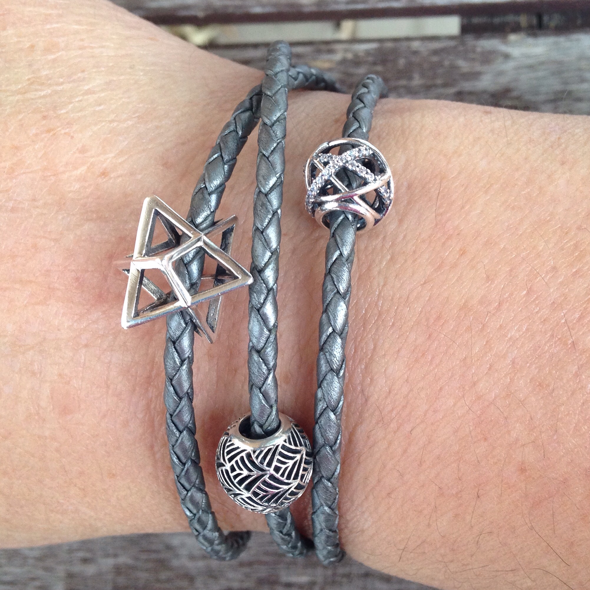Lastly, here it is on grey leather with the Tropicana bead and the Ohm Beads Merkaba.