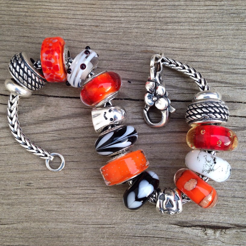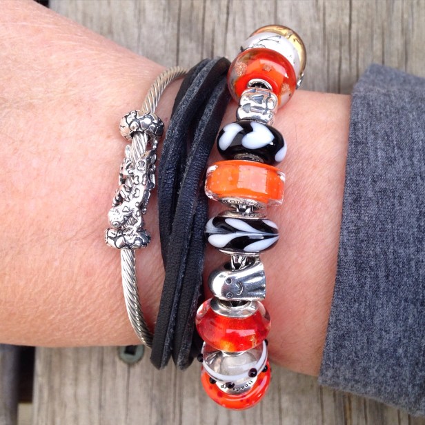 Time for a traditional Hallowe’en bracelet with orange and black.