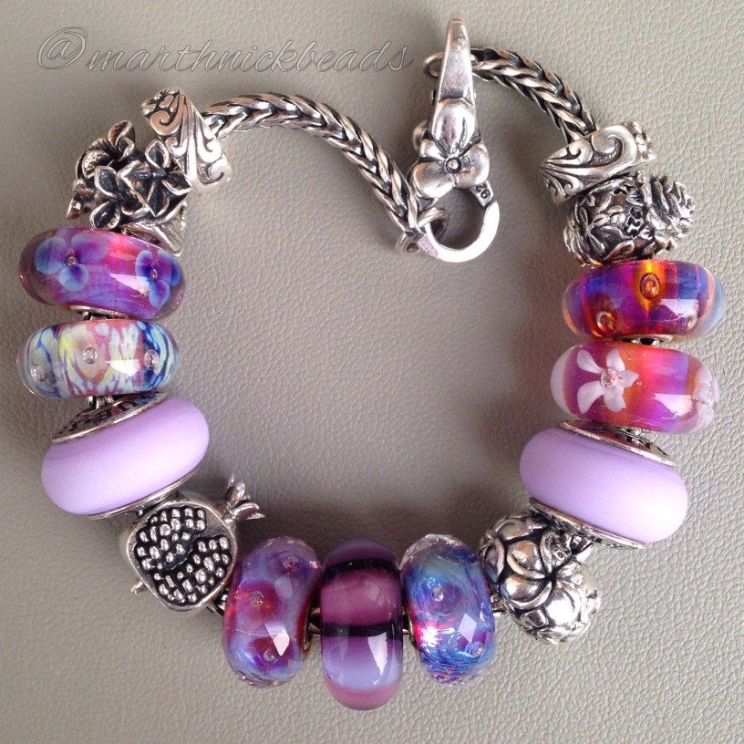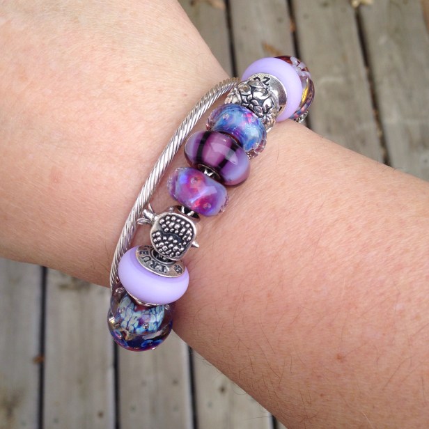 Purple is my go to colour. The Trollbeads Faceted Auroras make a great centrepiece for any purple bracelet.