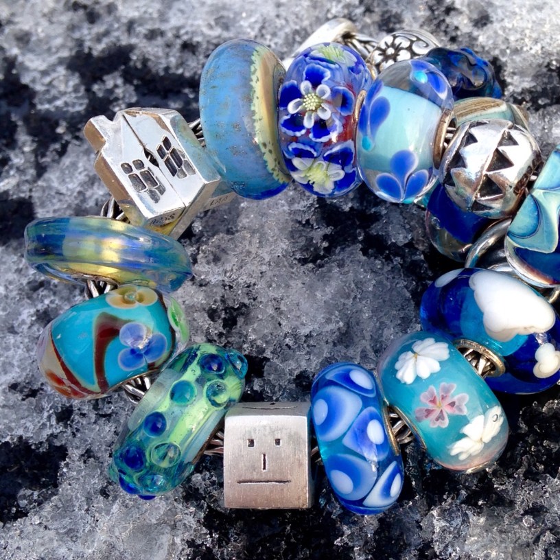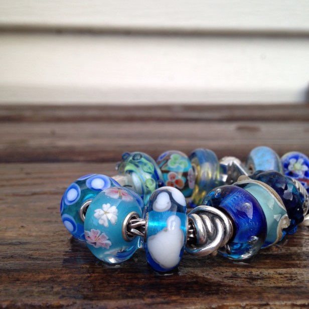 Last night I took my whole line of blue Trollbeads to make a bracelet.