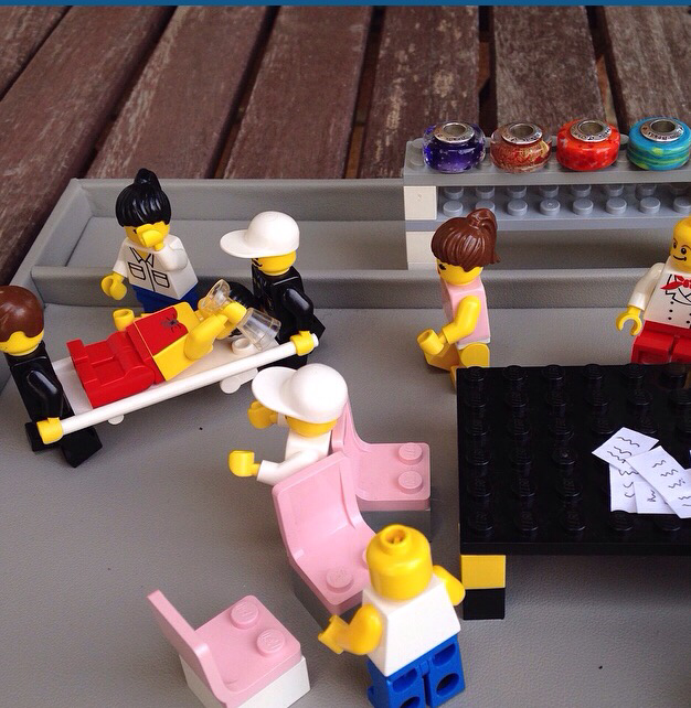 Our heroine, L3 (Lego Lush Lady) had a bit too much to drink.