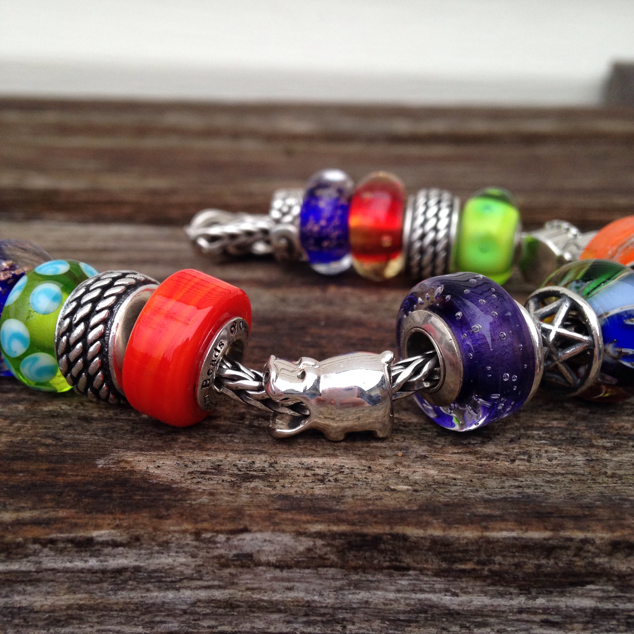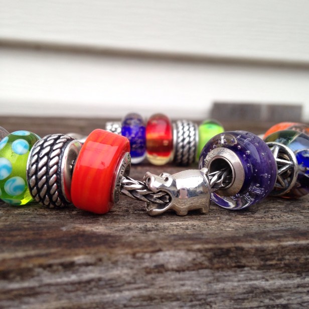 Lastly, here’s the whole bracelet. The other beads that were half price are the green Trollbeads and the Redbalifrog Rope beads. I’d love to hear about any beads you’ve been able to pick up at half price!