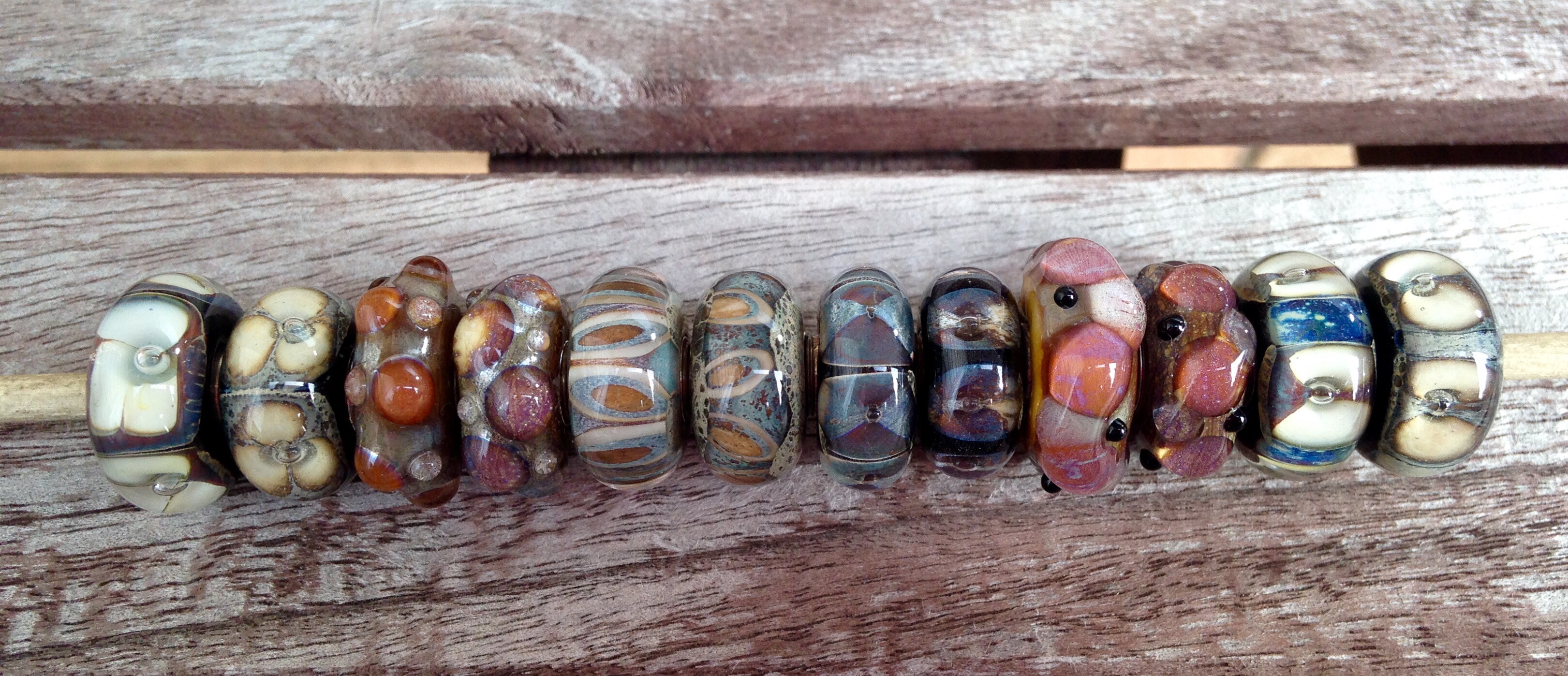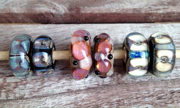 Wow! I didn’t realize the difference was that huge! Some beads do look like two different ones in your sets. I’ve been looking through your pictures in search of this Rocky Beach Kit hoping to find out about the real design of the Pebbles and Fossils. I took advantage of the recent Trollbeads promotion (4 beads = free lock and bracelet) and chose two silvers and two glass beads – Pebbles and Fossils which I’d been eyeing for a long time. When I got the package from Perlen I saw that those glass beads were 1) very different in size, 2) very much alike in colour and design, though they do not look like that on the Perlen website! Now I see that it is no wonder at all. Anyway I contacted them asking to exchange the glass and they agreed. I think I’ll need to show them your pictures to explain what I need )))