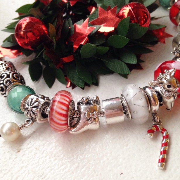 This is the final version of a Christmas bracelet. It’s fun to wear with a few dangles!