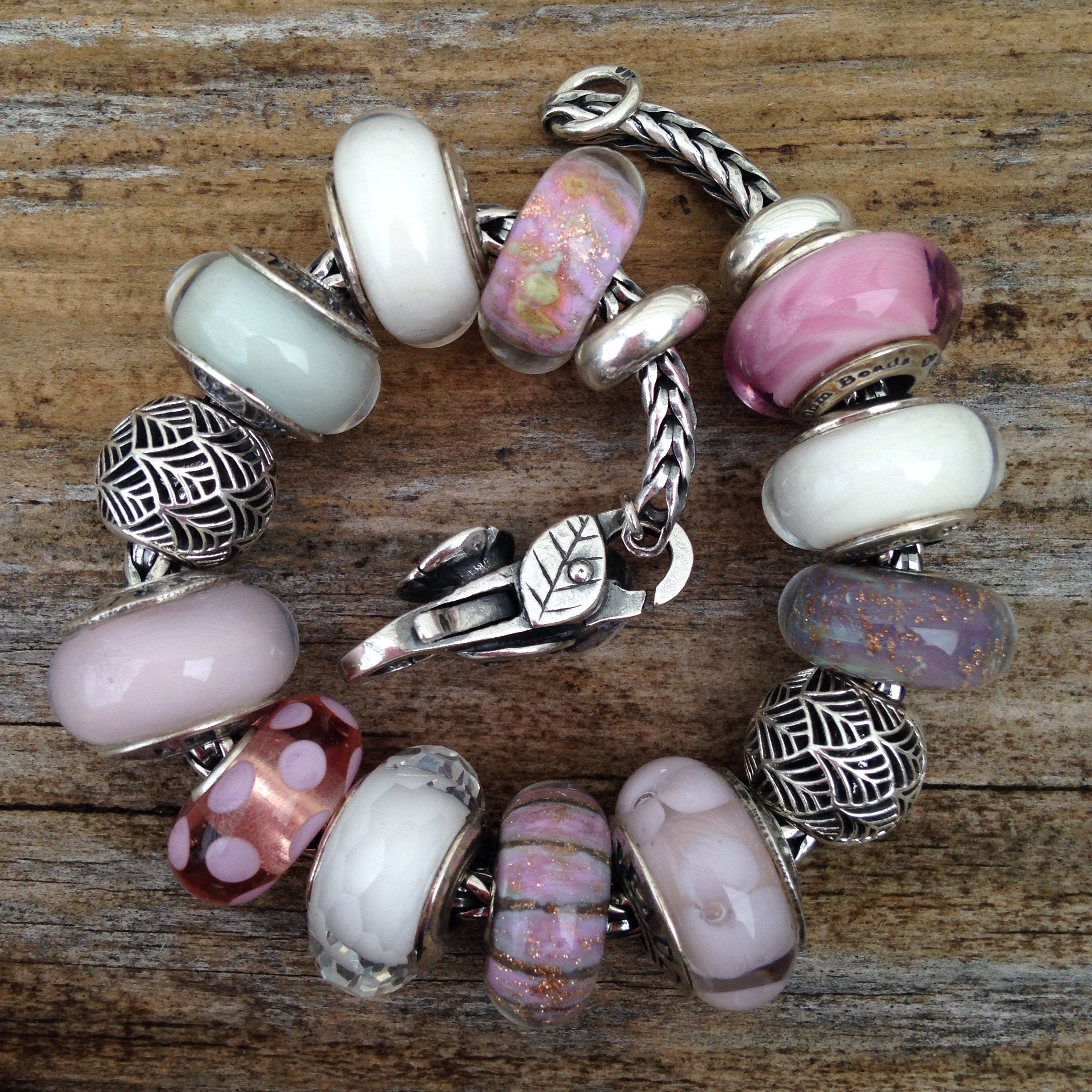 To balance out the pale green I had to use my Trollbeads Blue Desert, which has a lot of colours going on but blends nicely with the linen shade. You can barely see the green tinge in the base of the bead, which is the one to the right of the Pandora Tropicana bead.