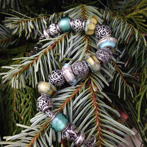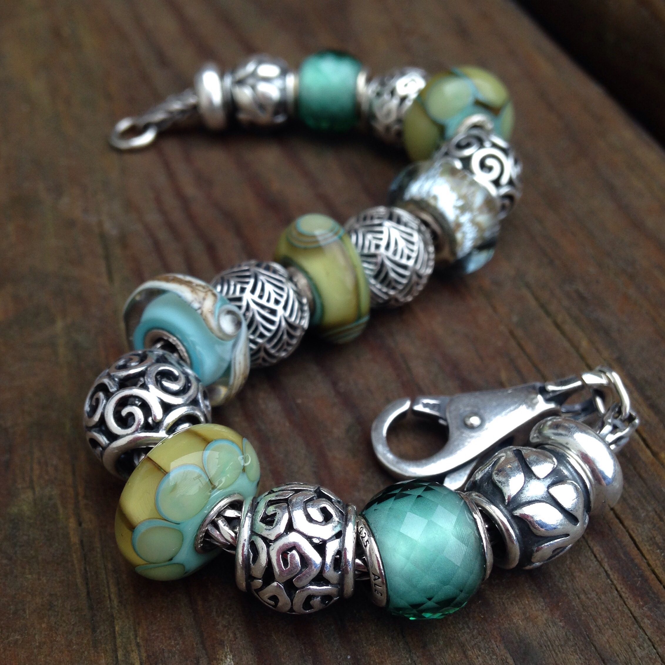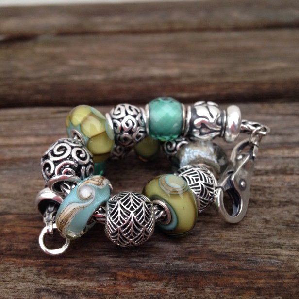 After I got the Trollbeads Native Elements kit the first thing I did was hold the beads up to my other beads to see what, if anything, would go with them. To my surprise, I thought that the Pandora Green Petite Facets were a good match.