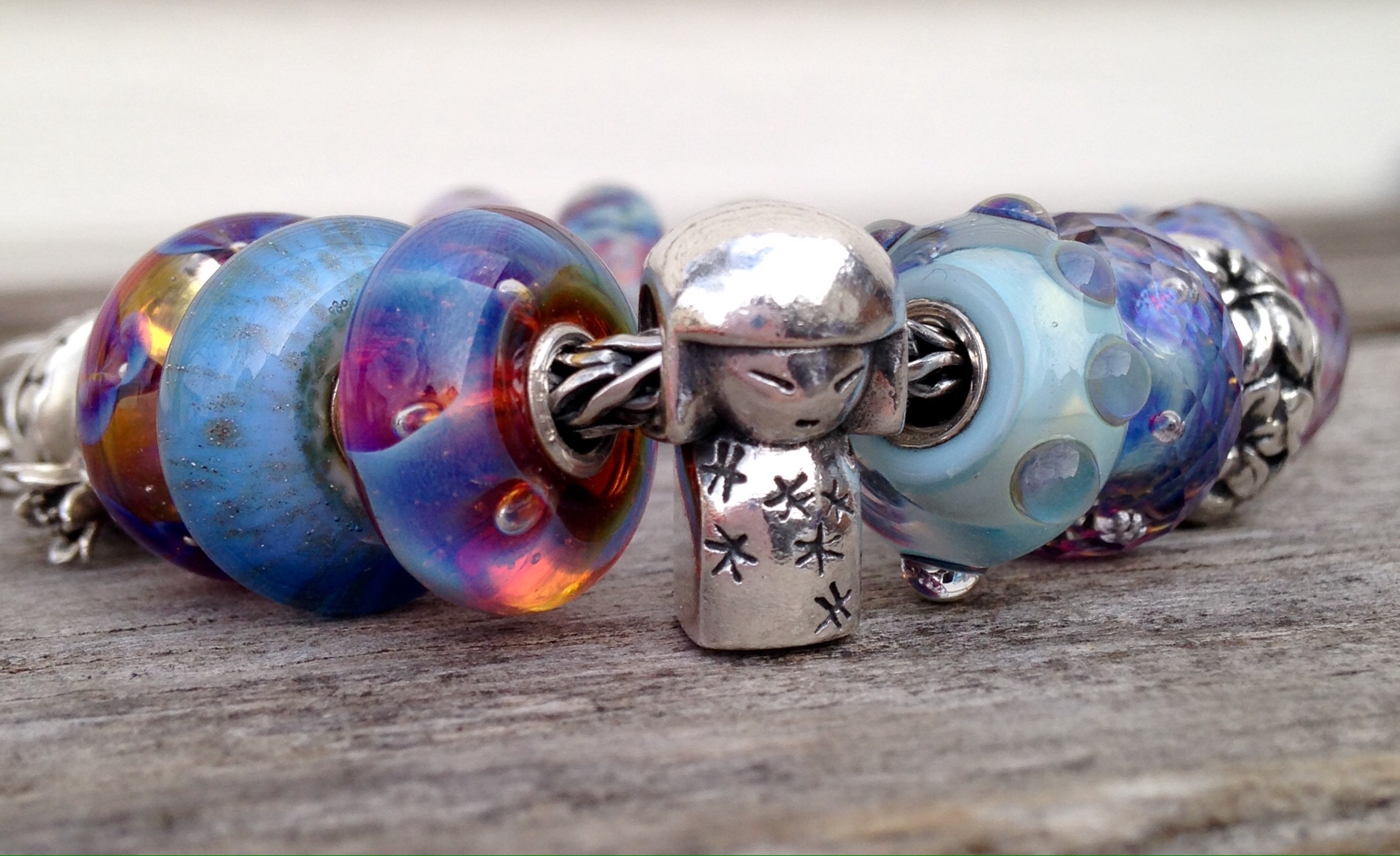 Here’s the whole bracelet. All the silver beads are Redbalifrog and the glass beads are all Trollbeads.