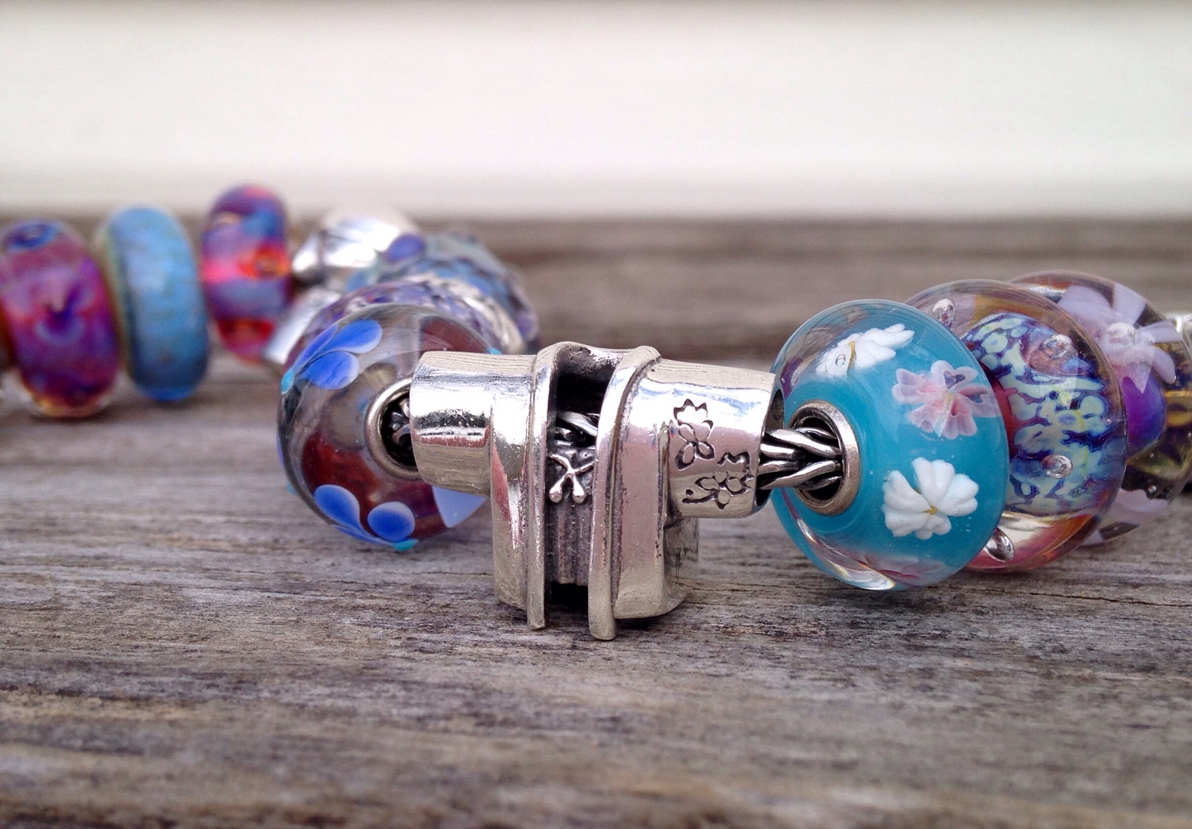 I decided to use the Trollbeads Blooming Sakura bead again with some purple and blue Trollbeads.