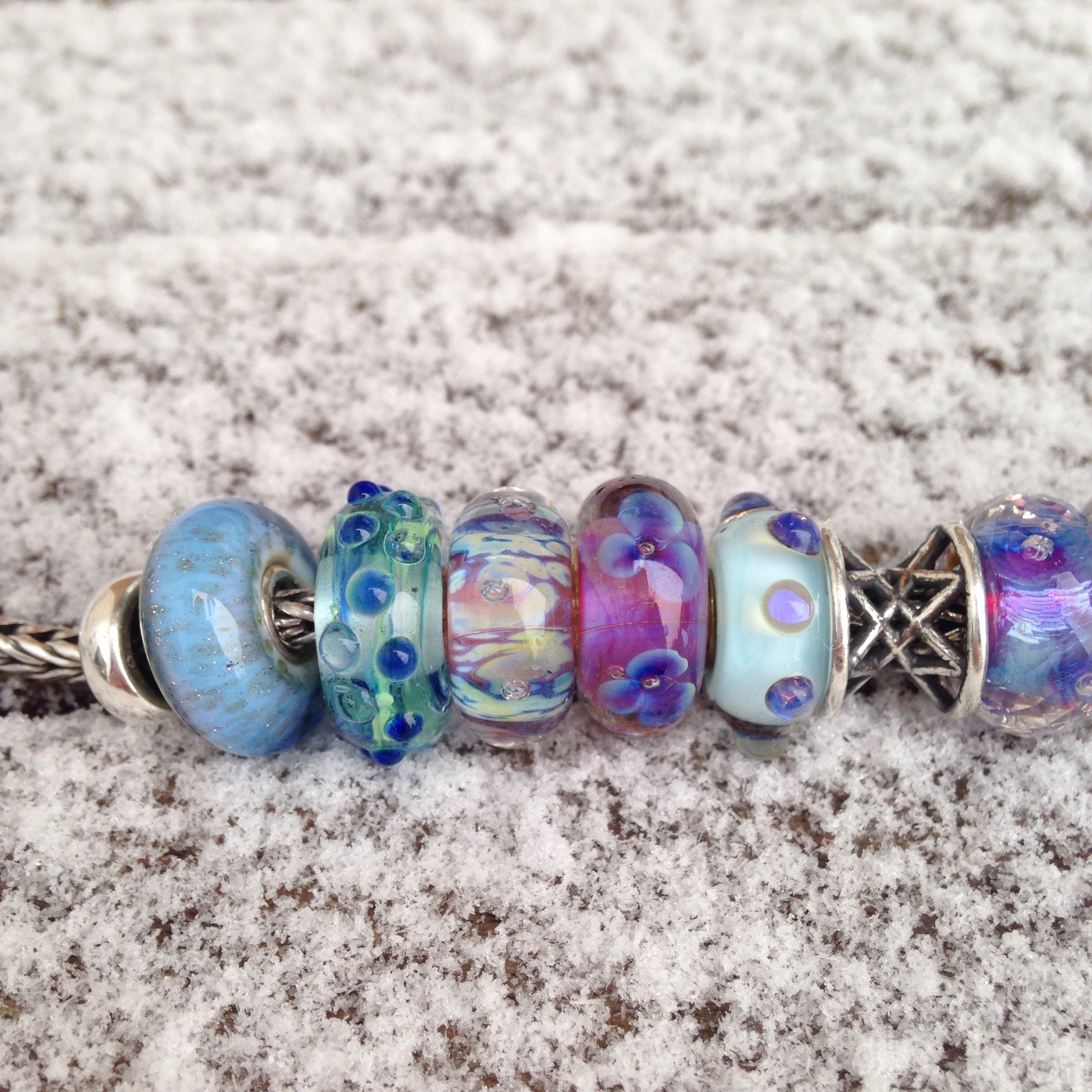 Here’s the whole bracelet, on my Iittala platter. It’s going to be nothing but beads in snow photos for the next while, I’m afraid…we’re in for some cold weather!