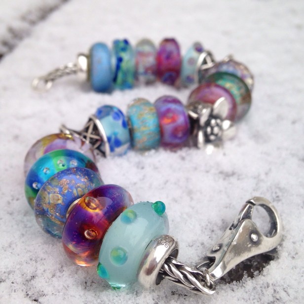 As I was putting some beads away the other day, I had a craving to make a bracelet with my favourite Trollbeads in blue, green and purple.