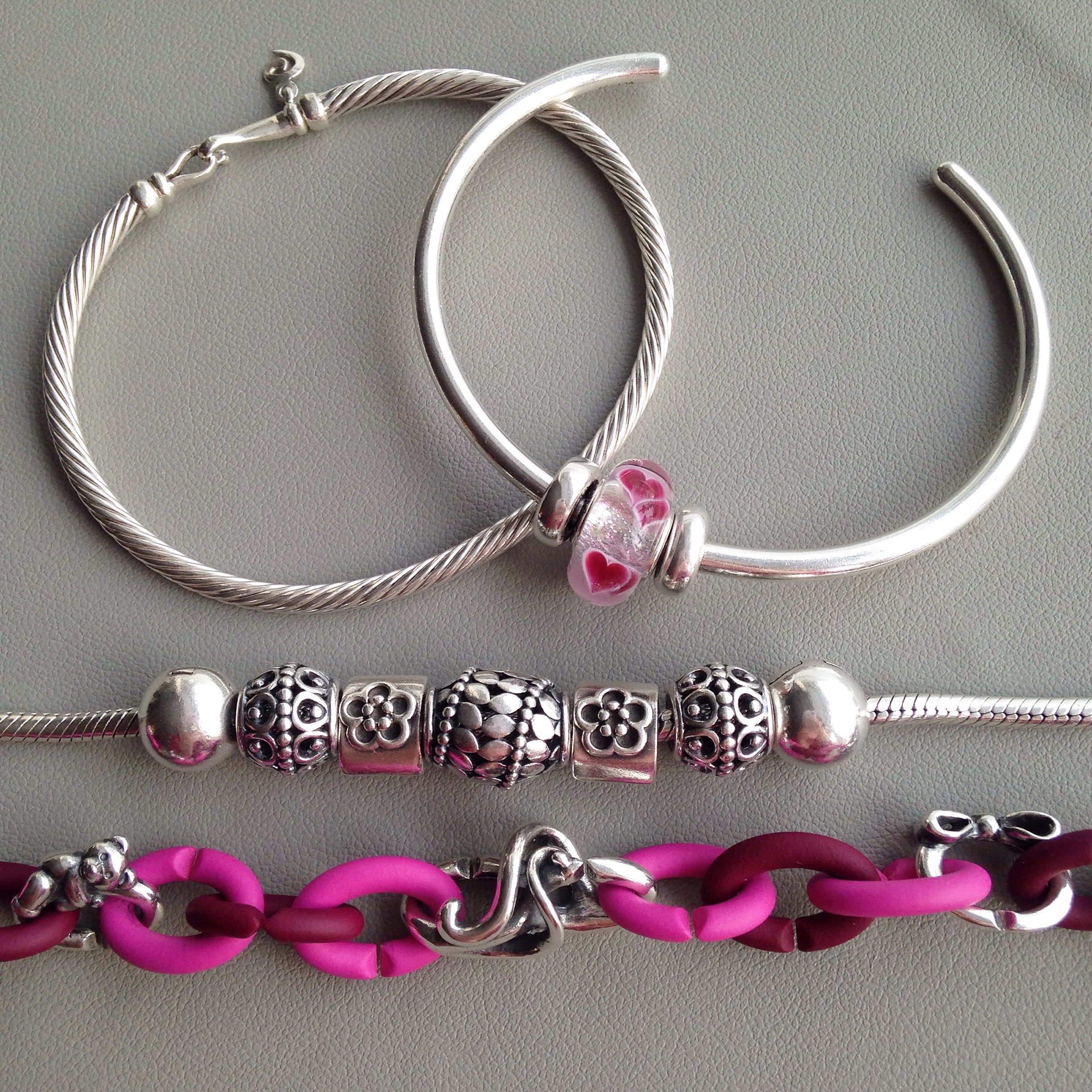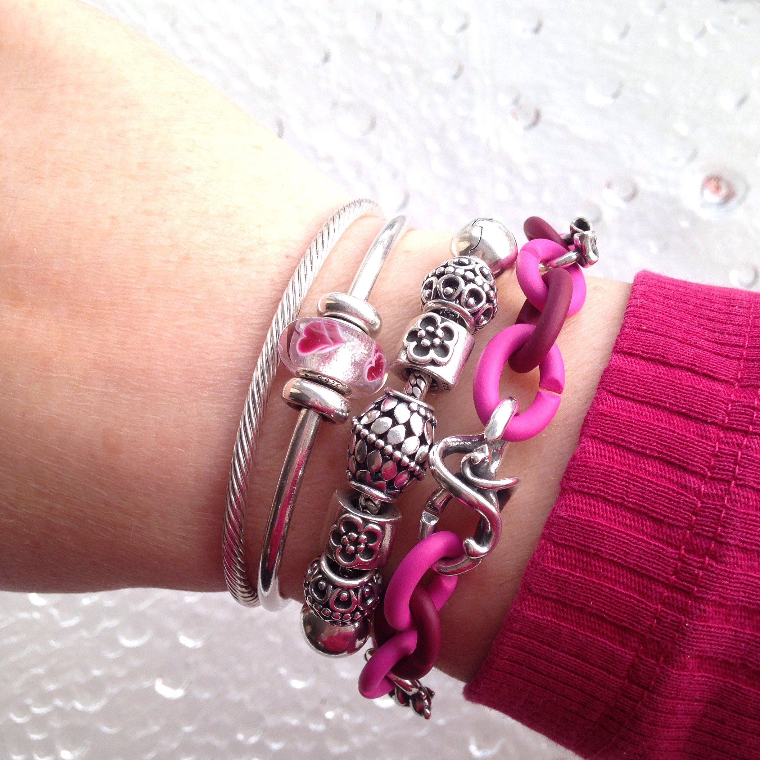 Here’s a bright pink combo for Friday. I combined the pink and Bordeaux X Links. The silver Pandora bracelet I always keep together.