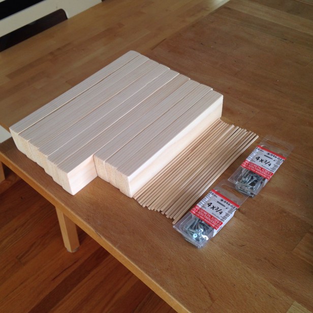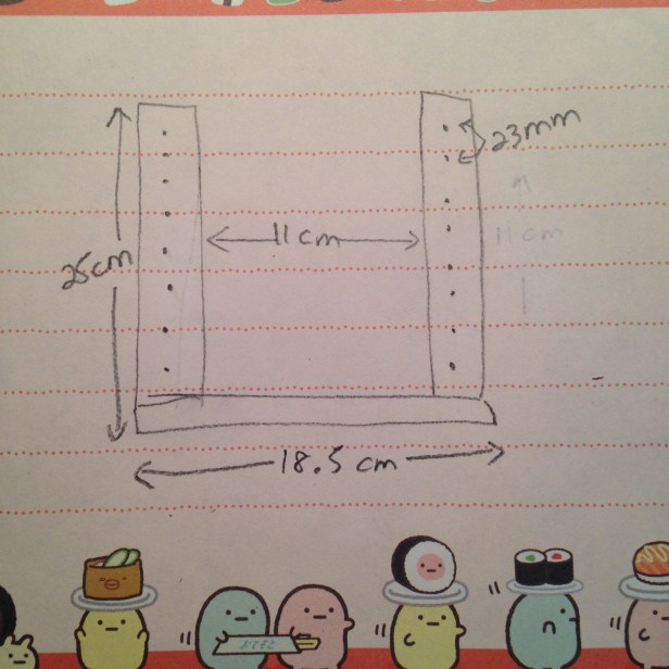Here are the dimensions that I used, but you can easily change that. The wood we used is pretty rough, but that’s because there’s not much point buying nice wood since we are totally not talented with carpentry at my house and we don’t have many tools.