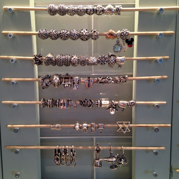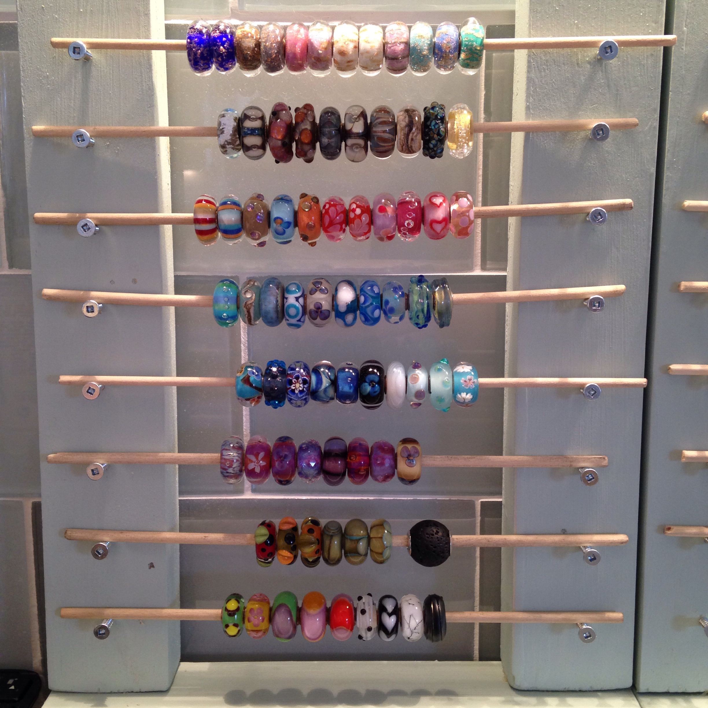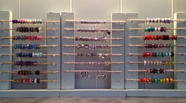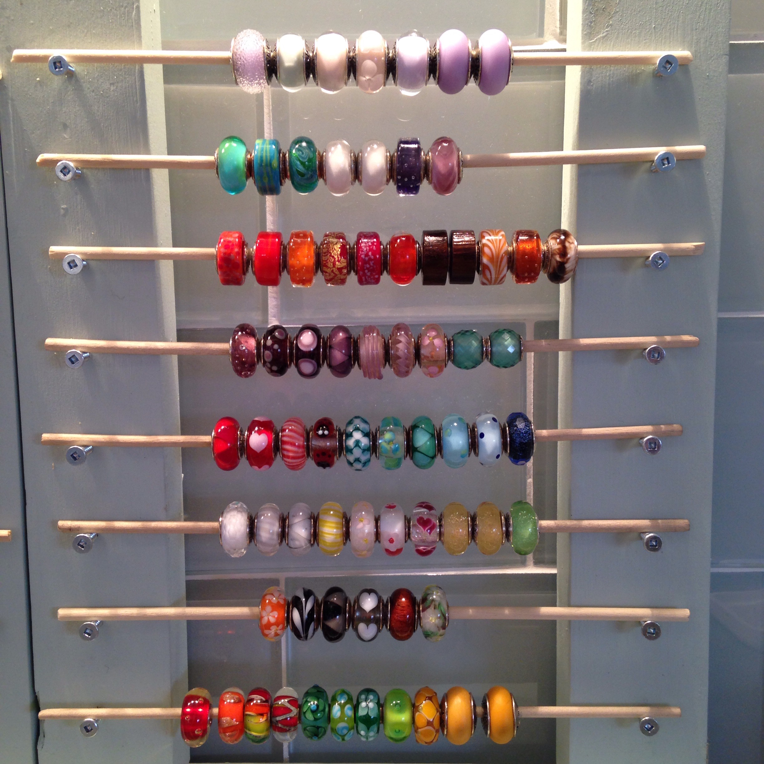 For under $20 you can make some bead racks as long as you have a saw, drill and hammer. I like to keep my beads on racks because then I feel like there’s a little bead store in my house and since I’m always changing my bracelets, I can easily see what’s there.