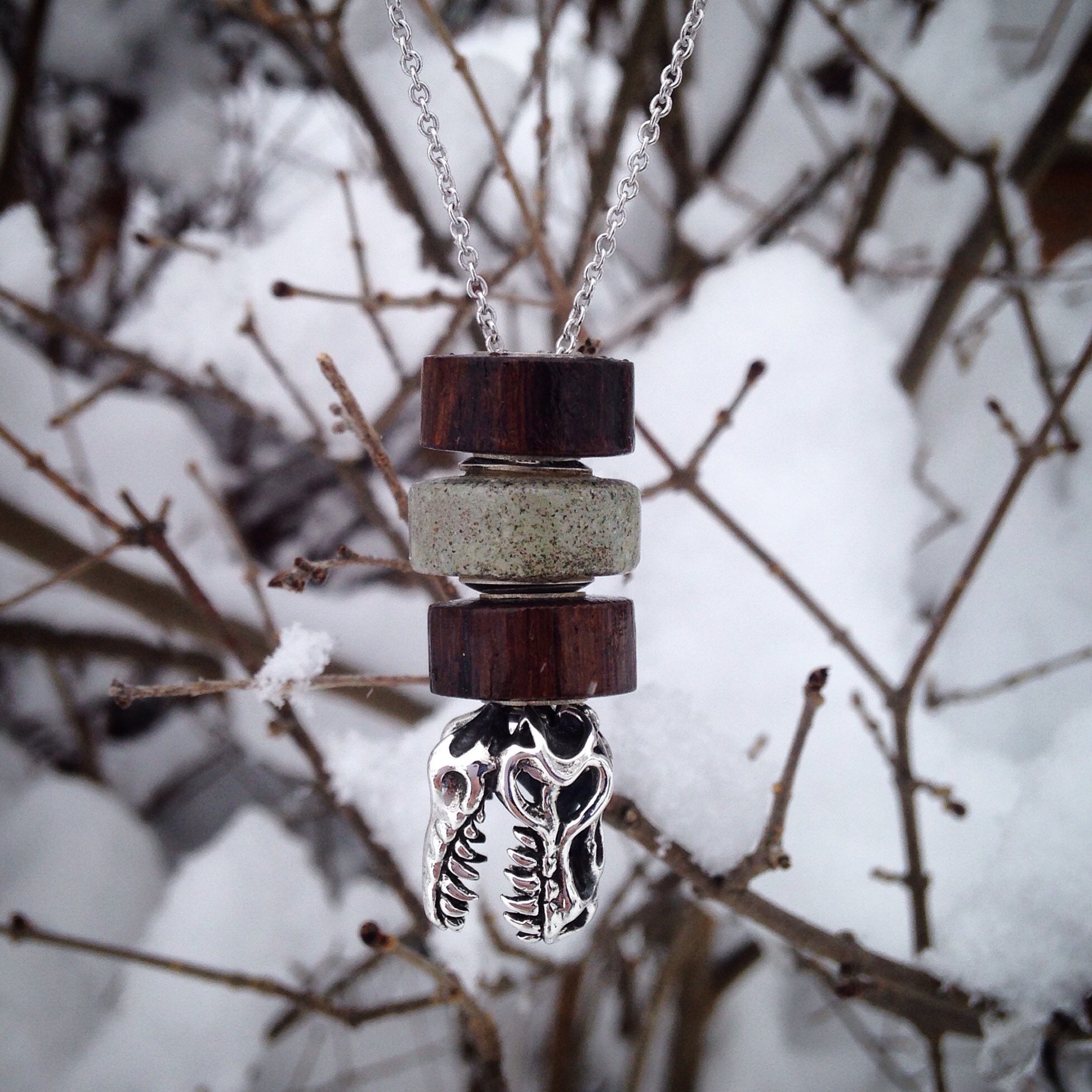 It can be used as a pendant and hangs nicely on the Ball Necklace. Here I’ve used it with the Humerus and Bolly Wood beads.