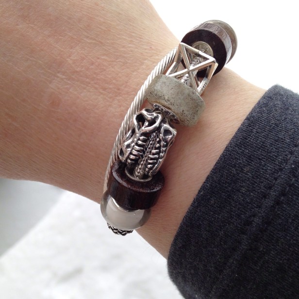 The T-Rex Skull by Ohm Beads has been on my wish list for a long time. When our kids were younger we used to go on seemingly endless car camping trips (think 6 weeks in a tent) and visited tons of children’s museums in Canada and the USA. So many of these museums would have little areas where kids can ‘dig’ for dinosaur bones. I mean, who *wouldn’t* want to do that? The silver bead has really cool individual teeth.