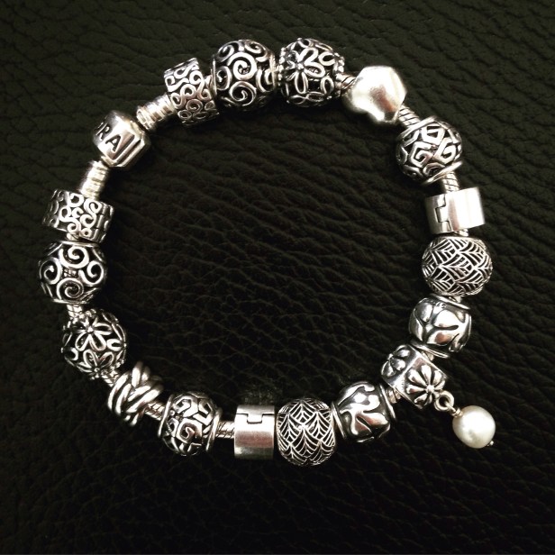 I love your pandora bracelets! I love how they are all just plain silver beads, no pave and not dangling. It’s such a shame that Pandora is moving away from this ‘look’ because its so classic and timeless. I want to create an all silver bracelet just like yours but started to late so there are not that many nicer plain silver beads to choose from any more.