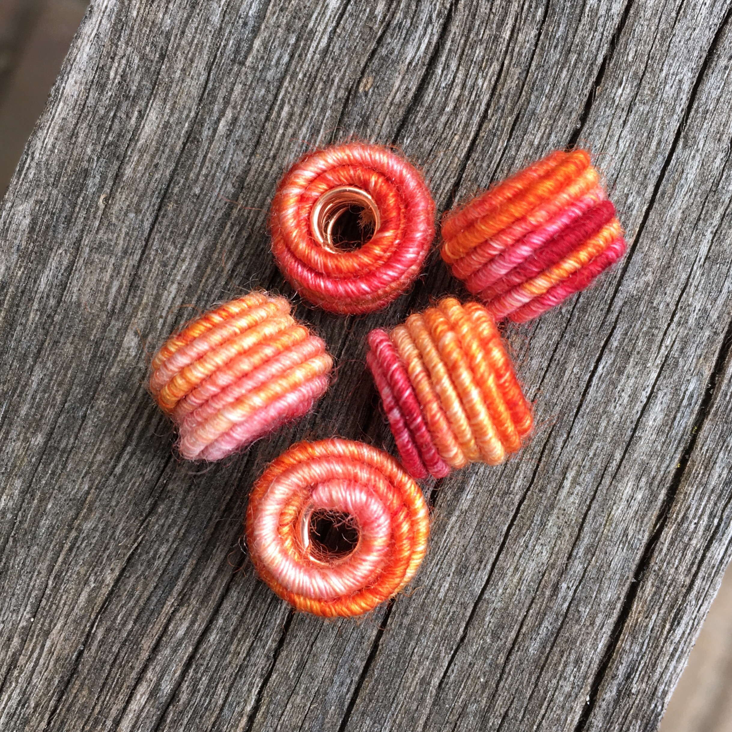 I really love the wool textile beads I bought from the Etsy store called Jimena’s Treasures, so I ordered some more in these lovely pink and orange shades. They are copper wire covered with hand dyed wool!