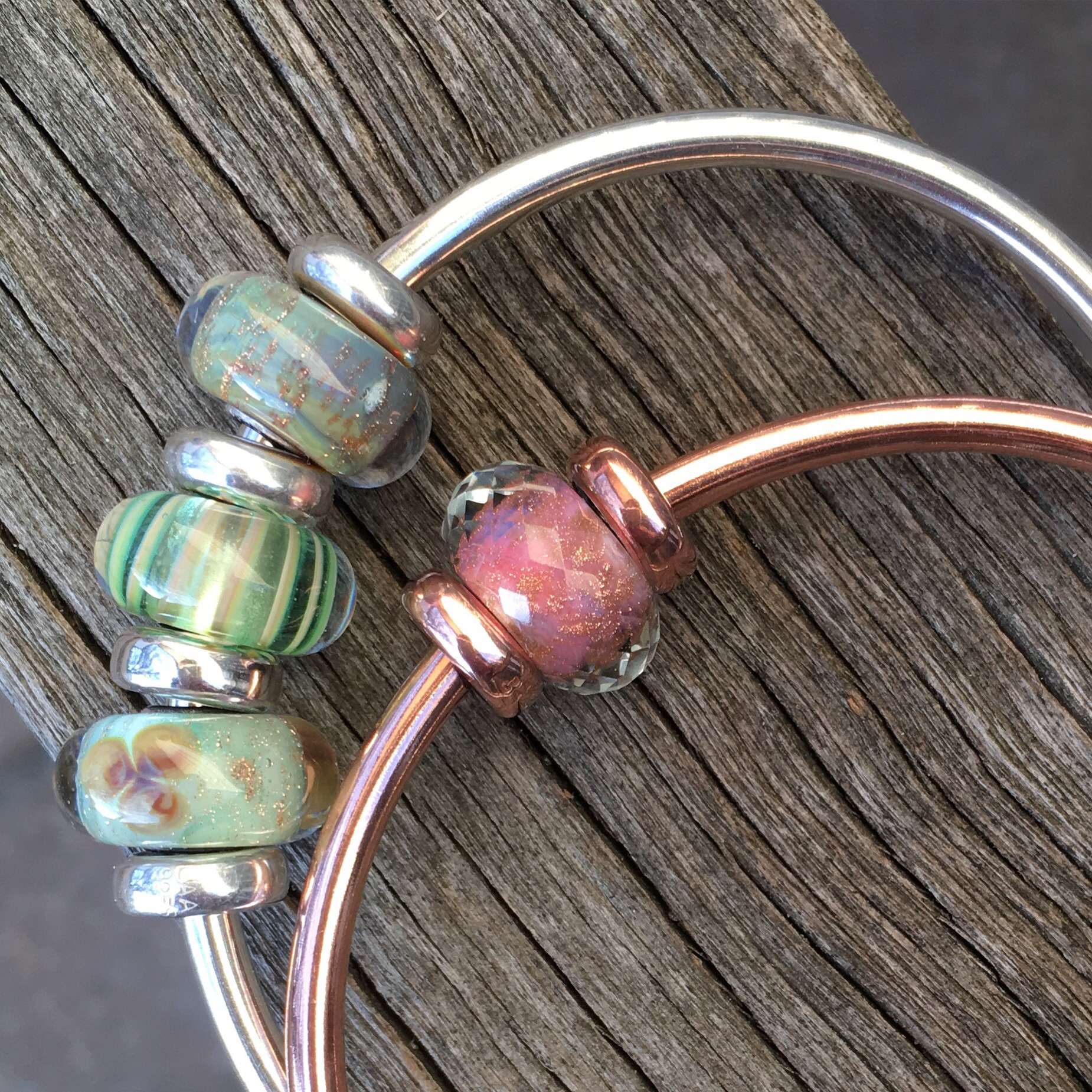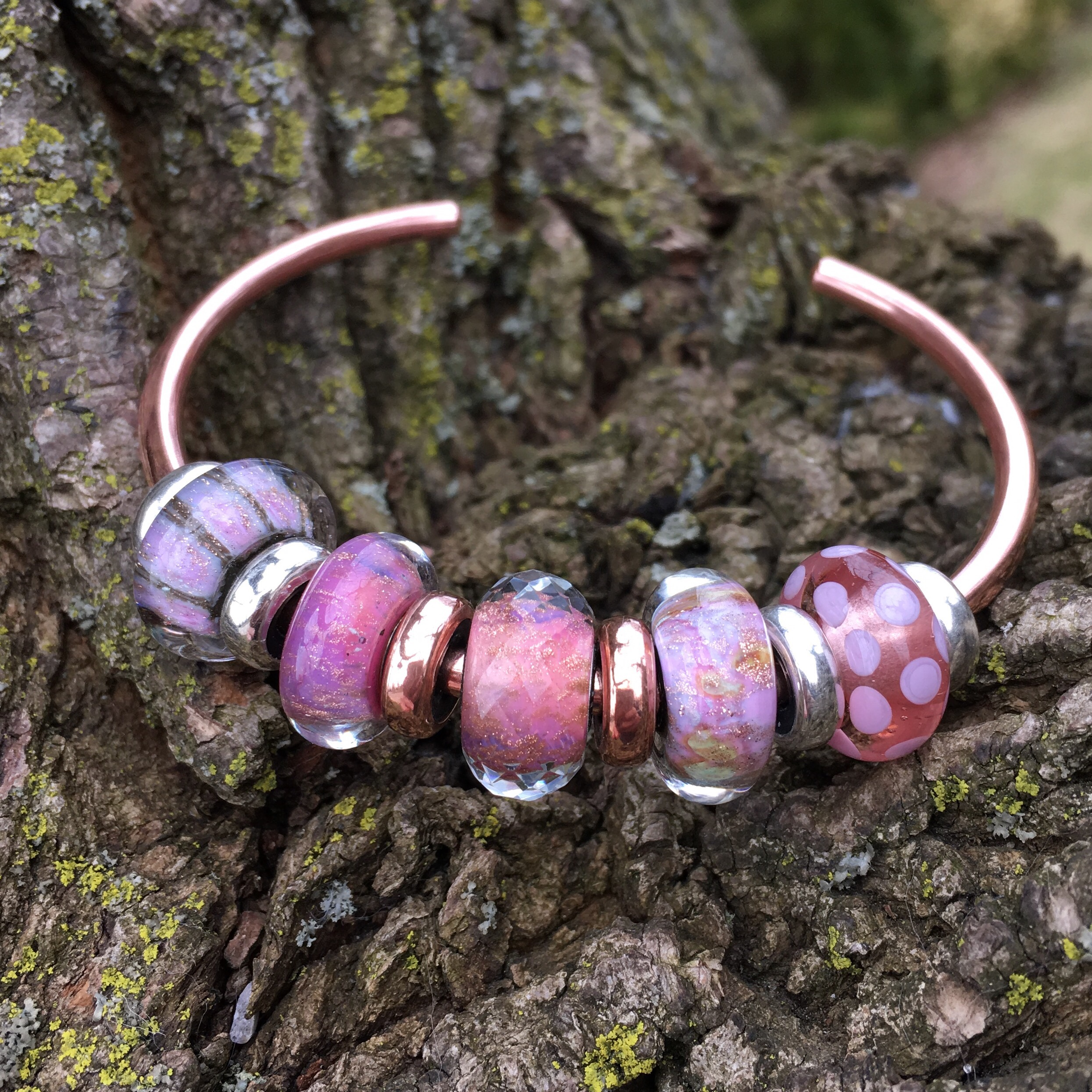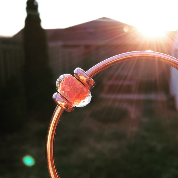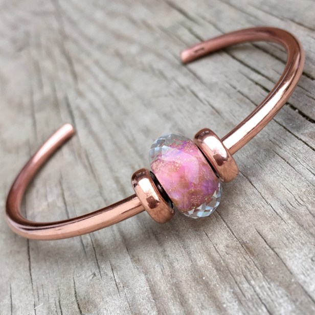 The other day I put the Trollbeads Pink Delight Facet on my copper bangle because of all the coppery sparkles at the core of the bead. Then, when I was looking at the Trollbeads website I noticed it is a set! You can see it here.