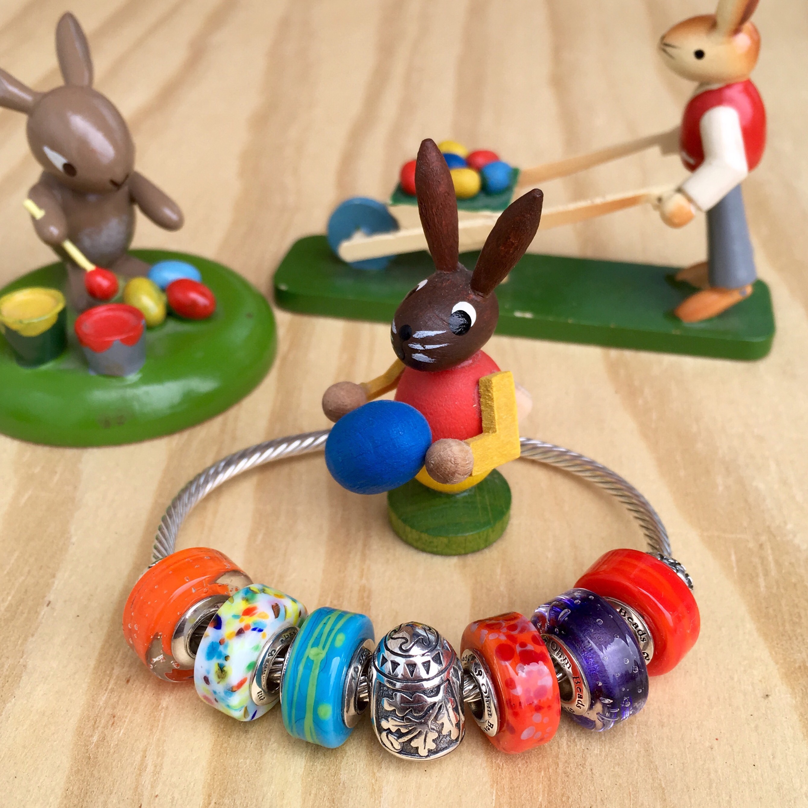 What beautiful photos and bracelets. I love the Upchuck Confetti bead and your perfect, new egg, just in time for Easter! I am guessing that Troll beads don’t fit on the Ohm Twisted bangle either, but honestly , the final photo shows just how beautiful the Troll beads look all together on their own bangle with their guest egg. I guess I will have to invest in the Troll bangle to showcase my growing collection of Troll flower beads. This is a beautiful post to start my day. Thanks for taking the time to make so many beautiful combinations and take so many great photos !