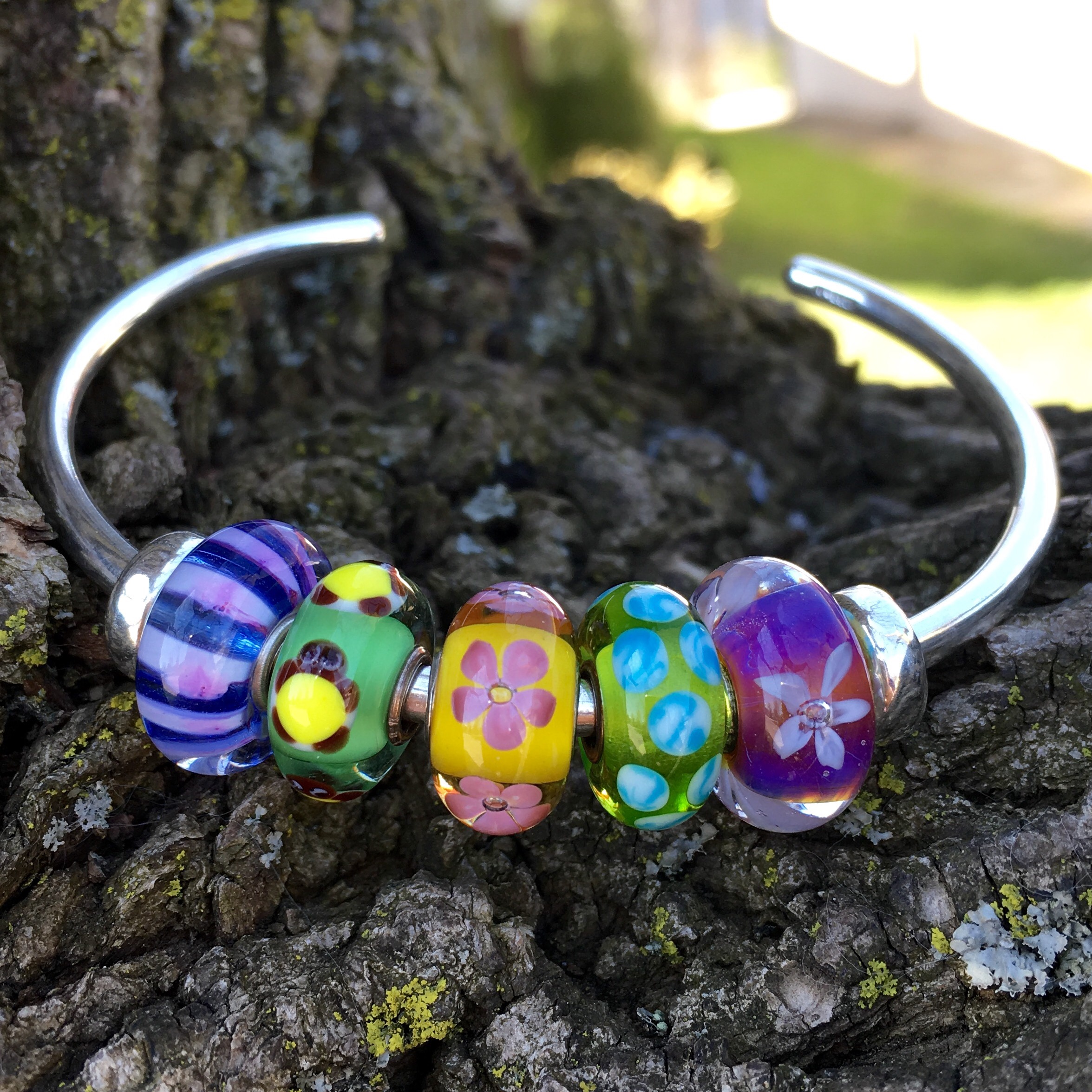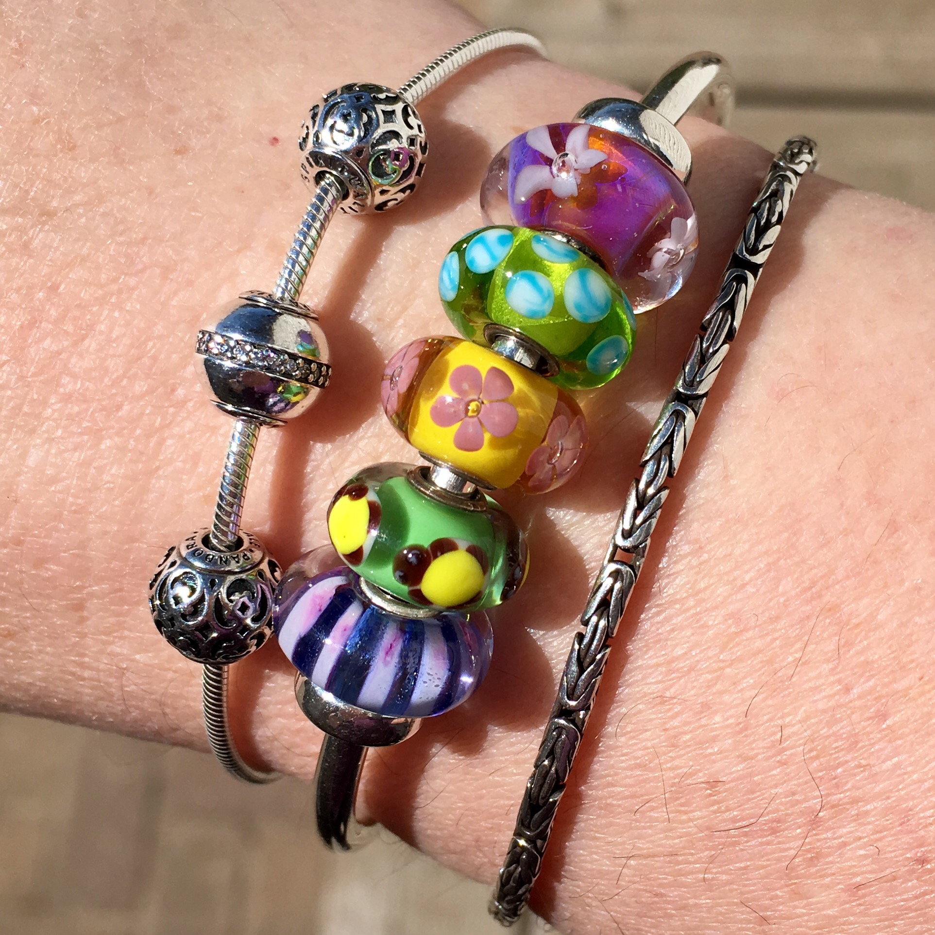 Happy Friday! Today I have a simple Trollbeads bangle as I wanted to use the turtle and flower uniques. It’s always so exciting to see the trees growing buds and the first flowers appear. Also, these beads look so pretty in the sun!