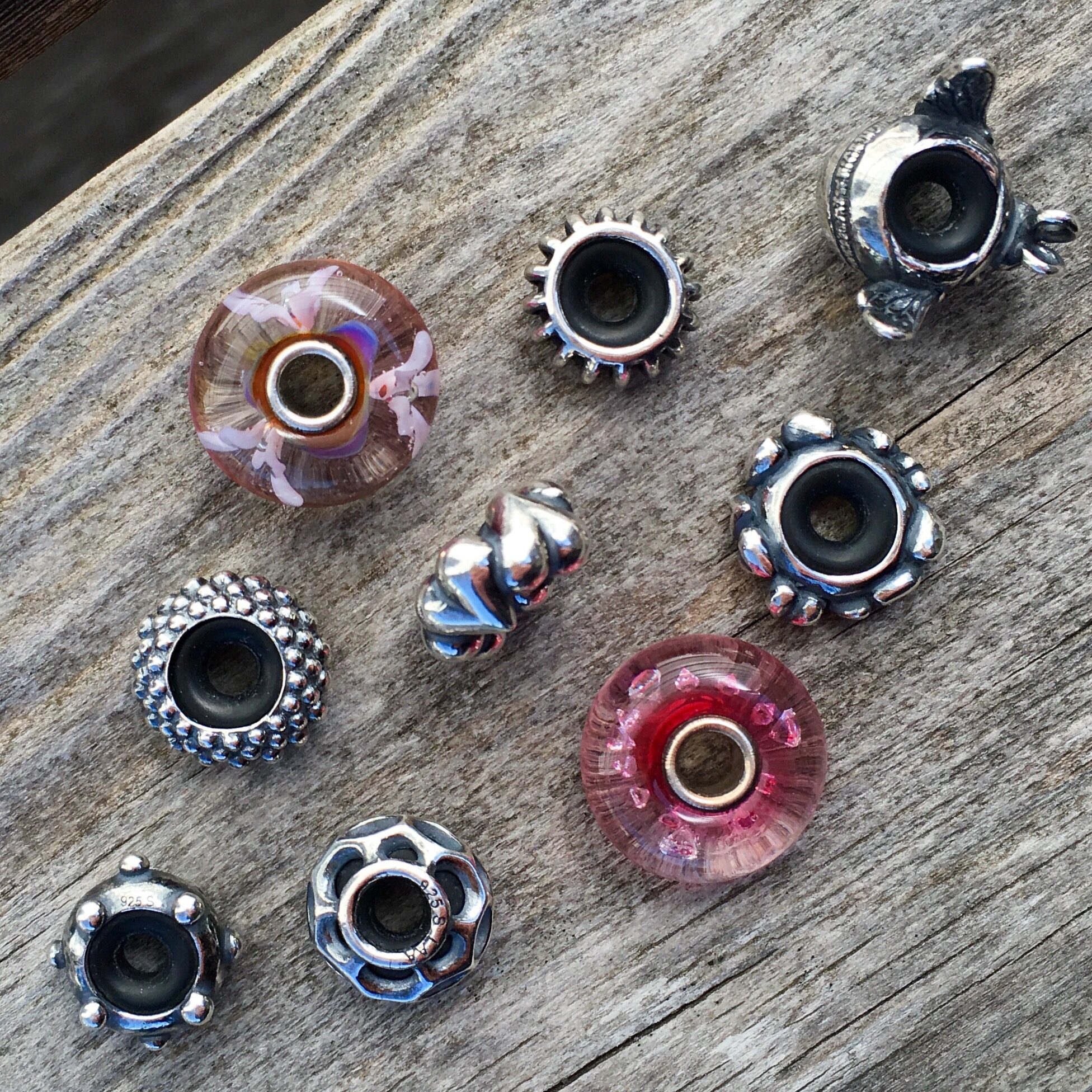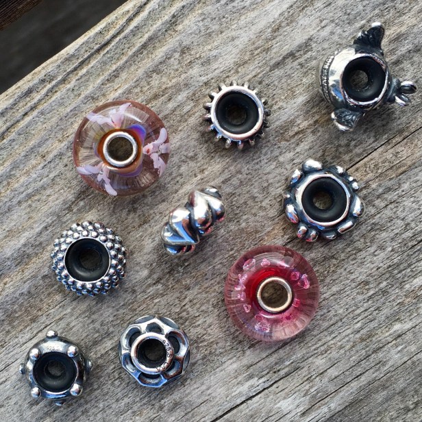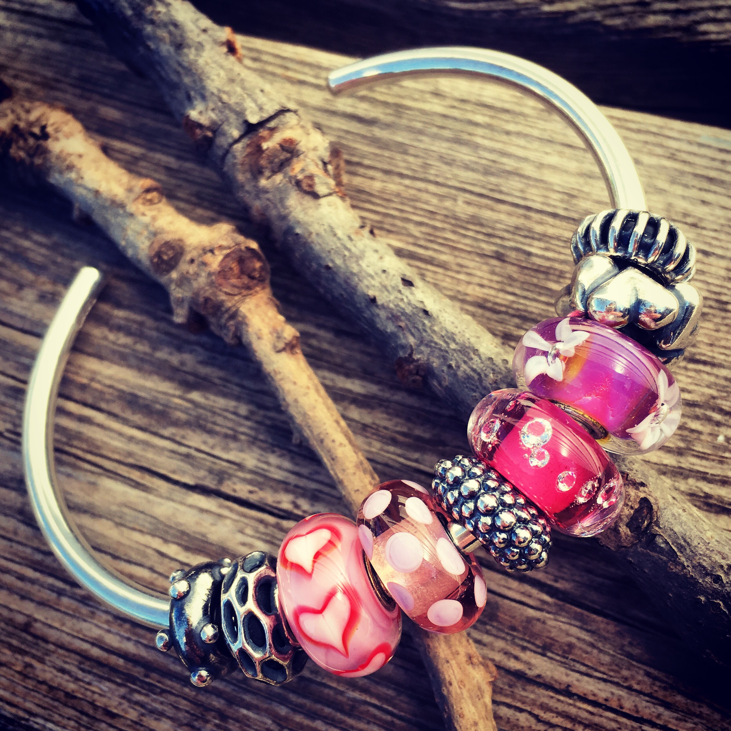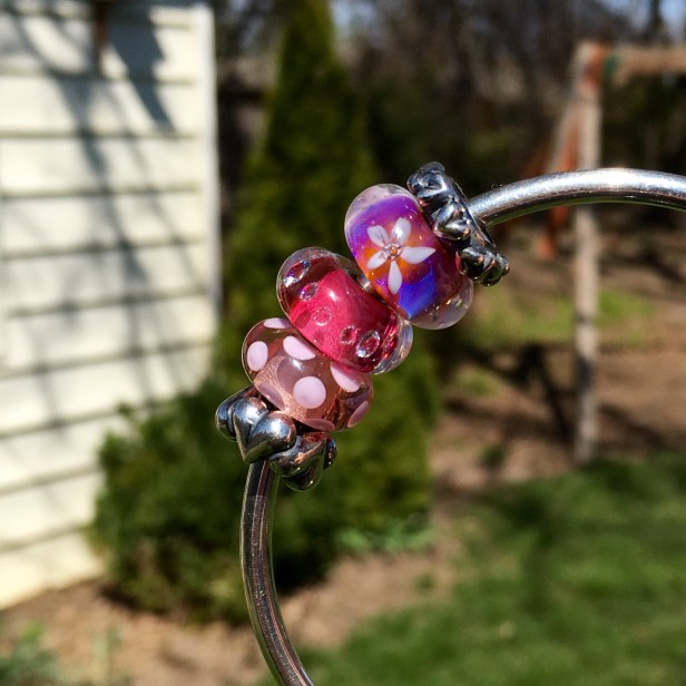 I made an all pink bangle with Asian Hearts, Summer Dot, The Diamond Bead, Pink and Sea Anemone.