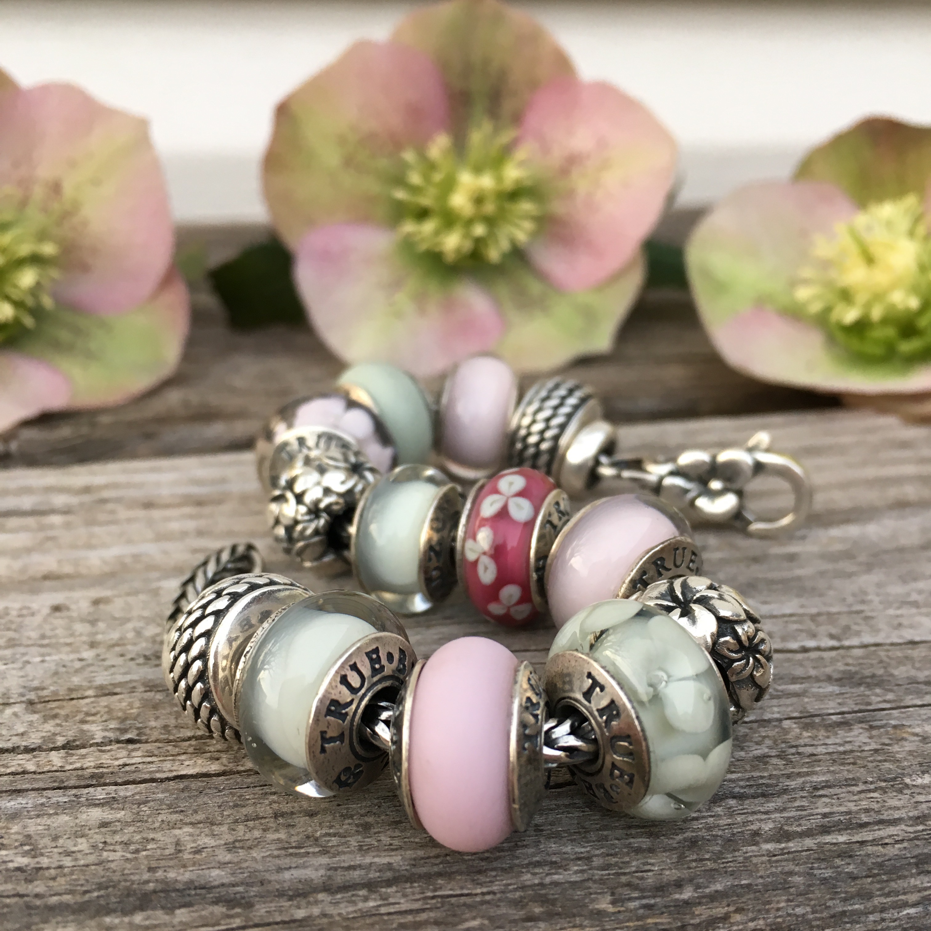 Beads in the Linen and Baby Pink shades were the obvious choices. I also used my Cranberries Treasure bead from Great Lakes Boutique.