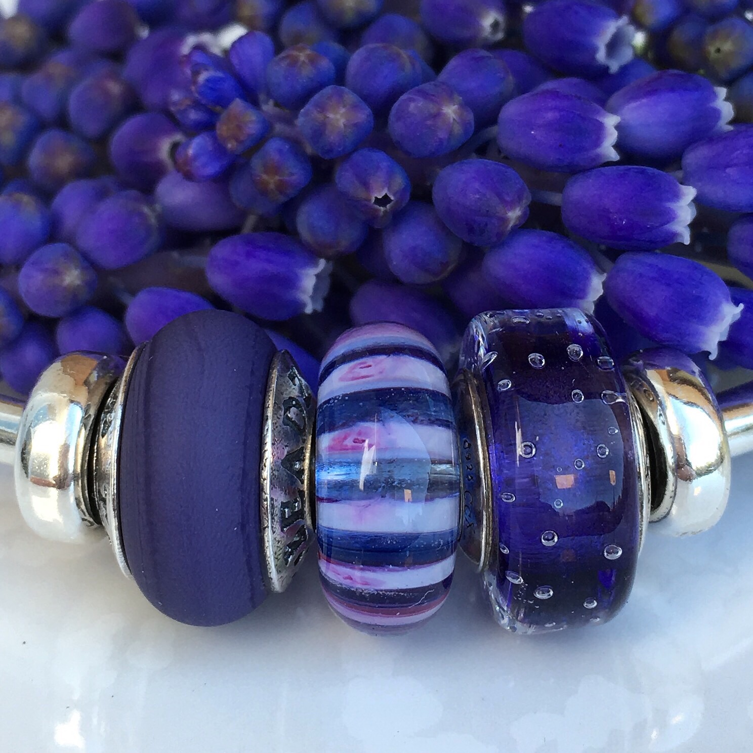 For more purple I wore a bangle made with the Royal Viola, Trollbeads Violet Stripes and Ohm Beads Get in Shape.