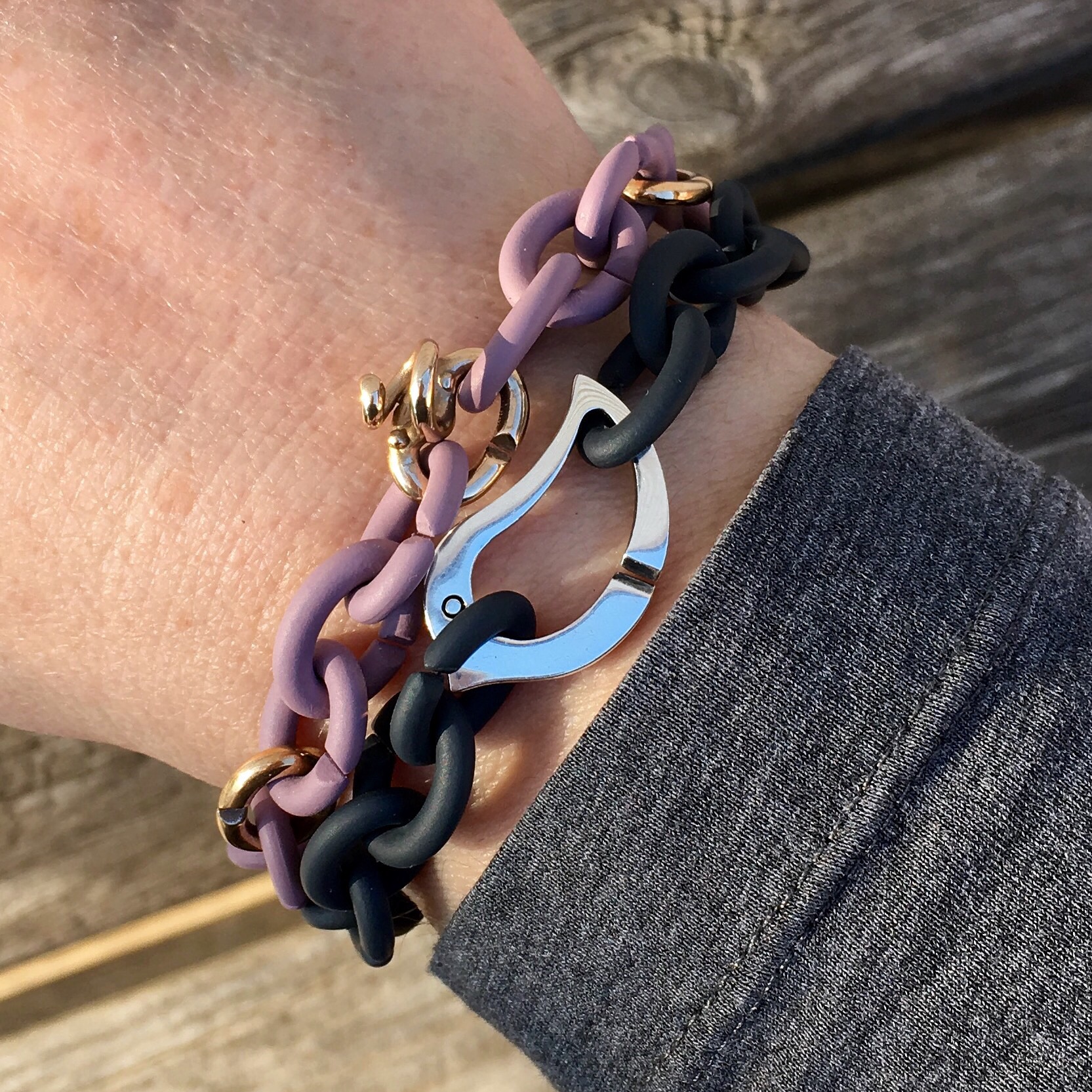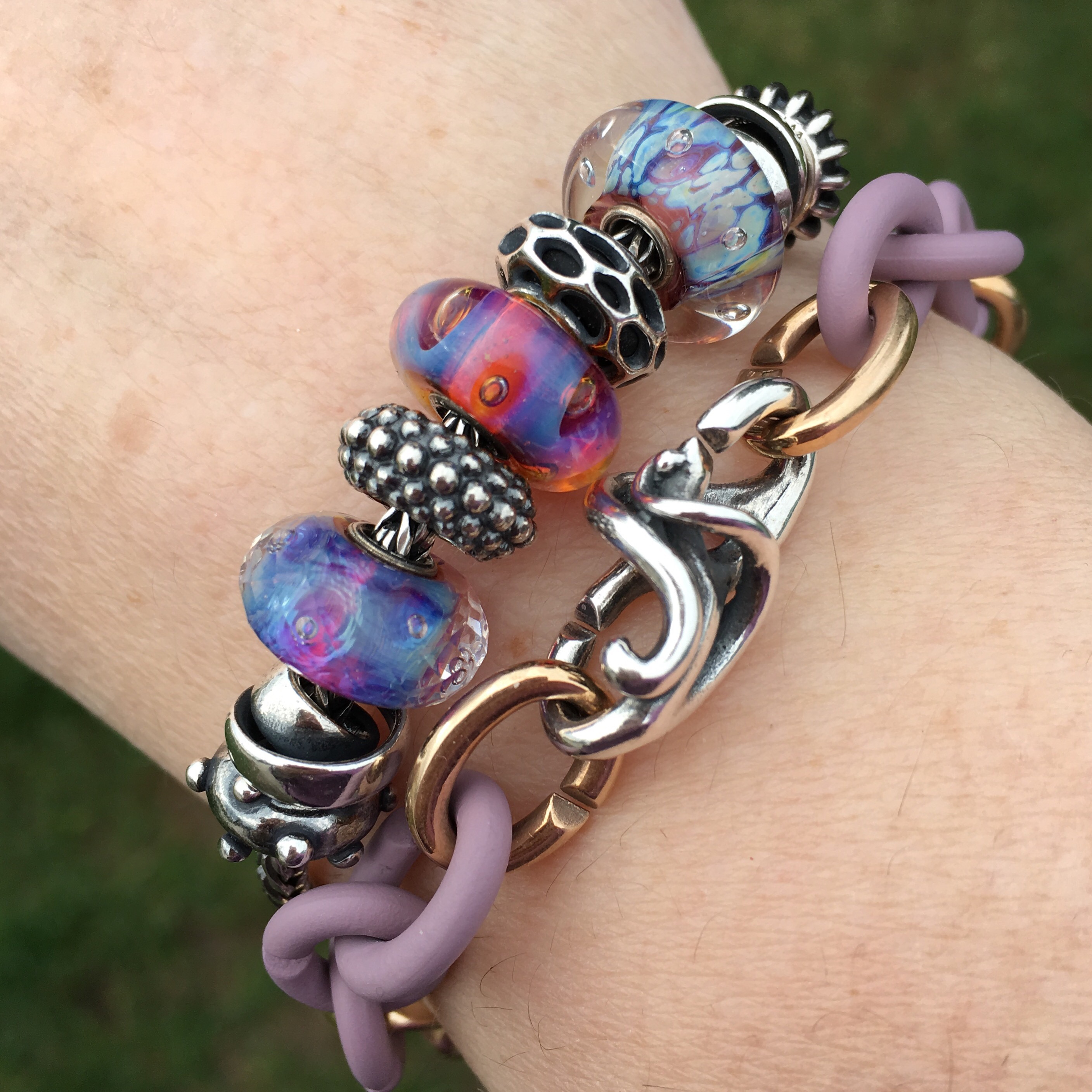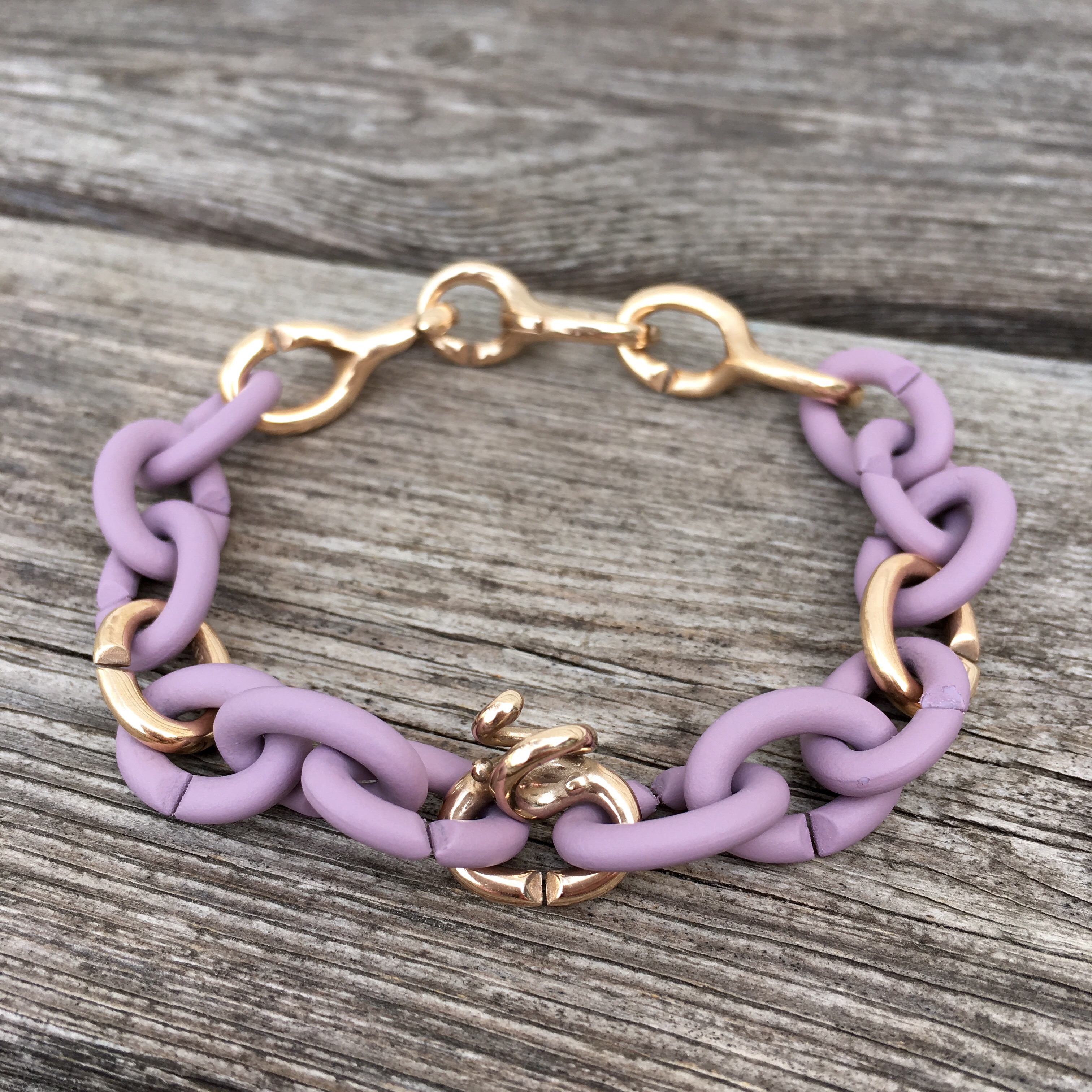 Love the purple and bronze links bracelet, it’s so pretty.