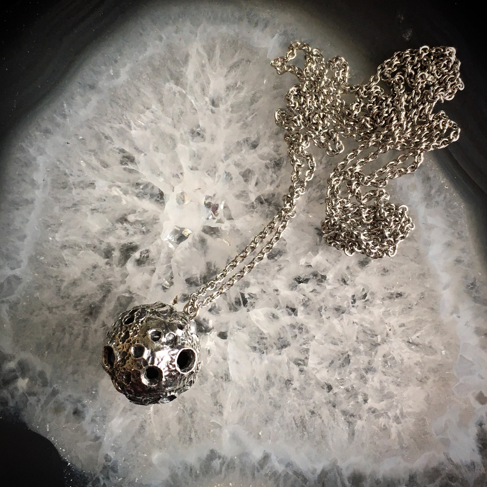 Luna was the Bead of the Month for May and some people received the darker, oxidized finish but mine is the more common silver. It is absolutely stunning. I believe it sold out almost right away, so this is just a post to show some combos, plus I wanted to show how the Ball Necklace works, in case anyone is not sure. The Ball Necklace was made for the Rawr series of dinosaur skulls. You pull it through a big opening and then the ball stops it so the bead hangs really nicely. It’s about 70cm long.