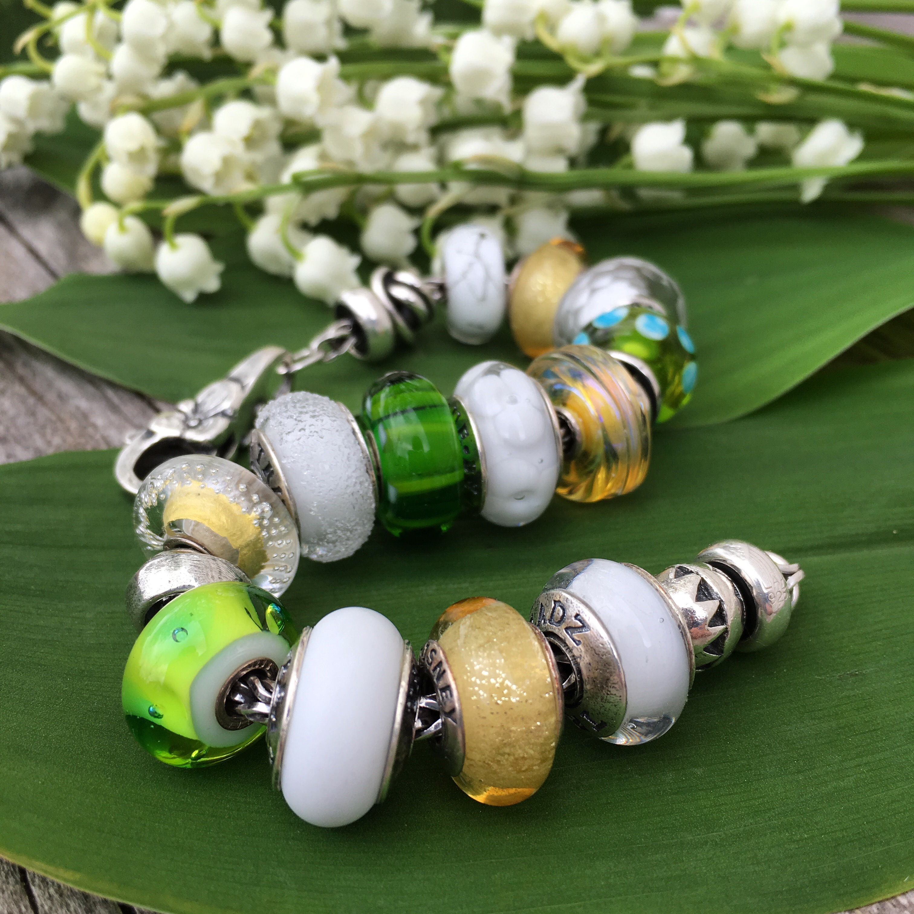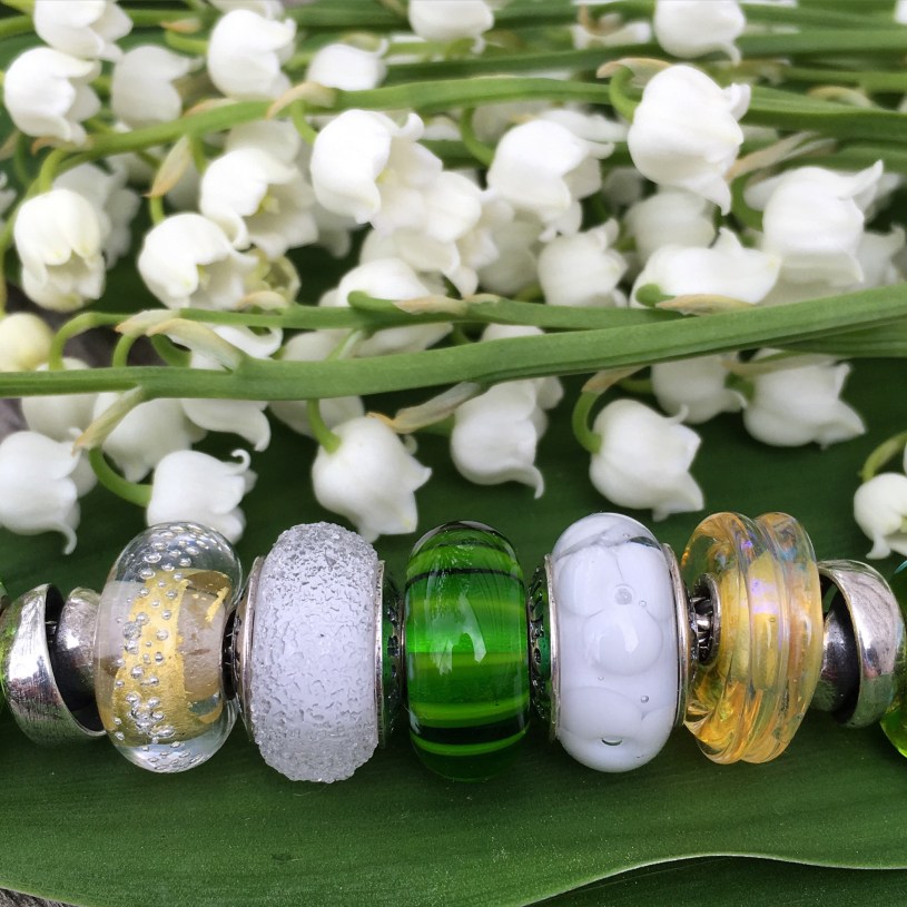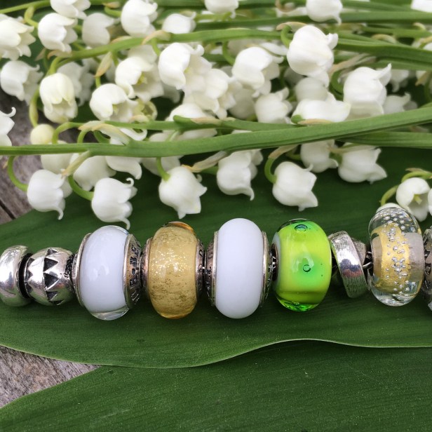 For this bracelet I wanted to use mostly white but with a bit of yellow and green, just the the flower itself. I just adore the scent and the Lily of the Valley is a real highlight of the spring for me!
