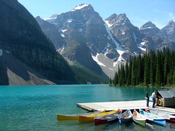 Another gorgeous body of water in Canada is Moraine Lake in Banff National Park. This water is from a glacier and is a beautiful colour. If you ever visit one place in Canada, Banff National Park would be my recommendation, hands down. This was our first trip with our kids when they were 3 and 5 and we went car camping for six weeks. Six weeks of sleeping in a tent. 😀
