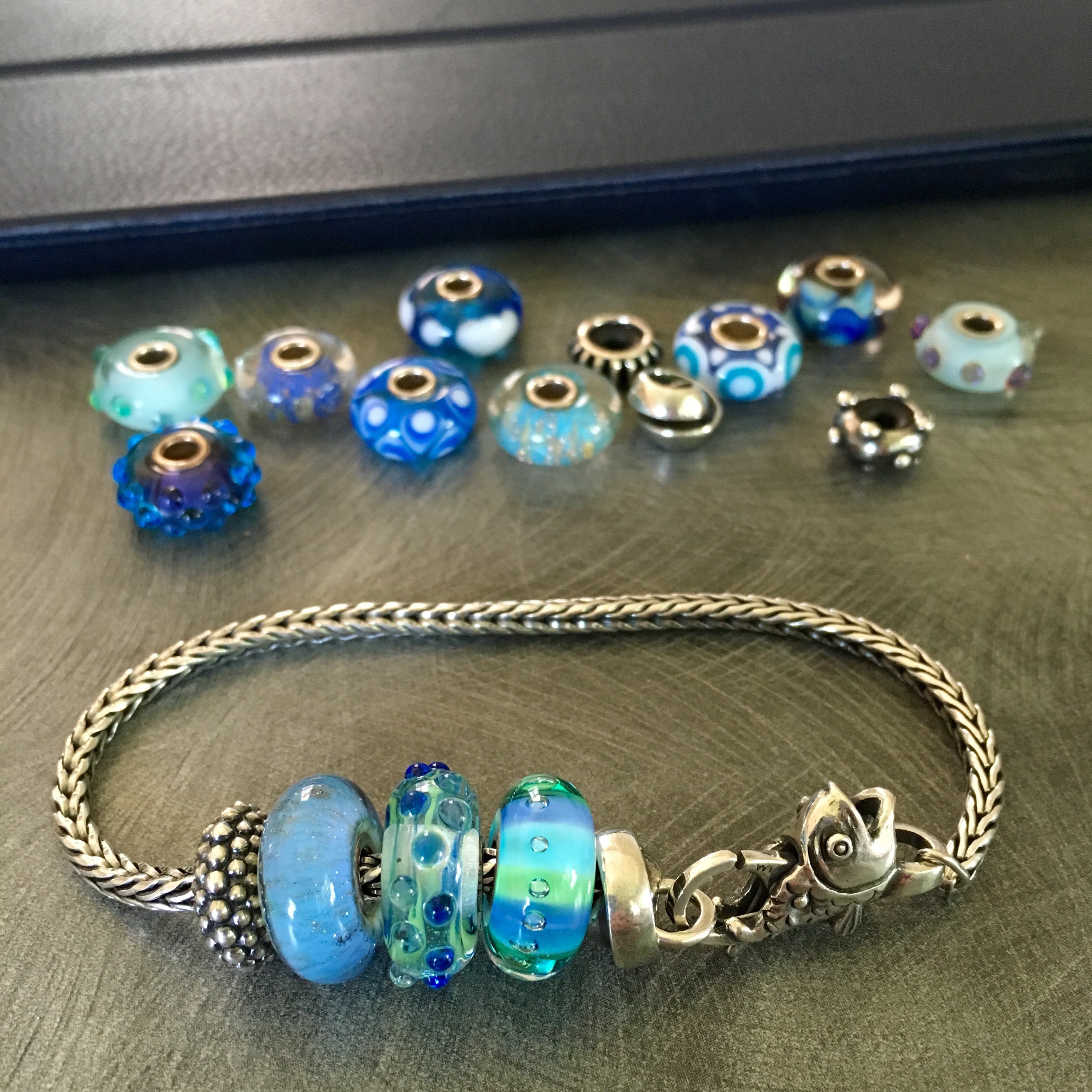 So, I thought I should make a bracelet of pretty blues that remind me of water to go with the Fish Lock!