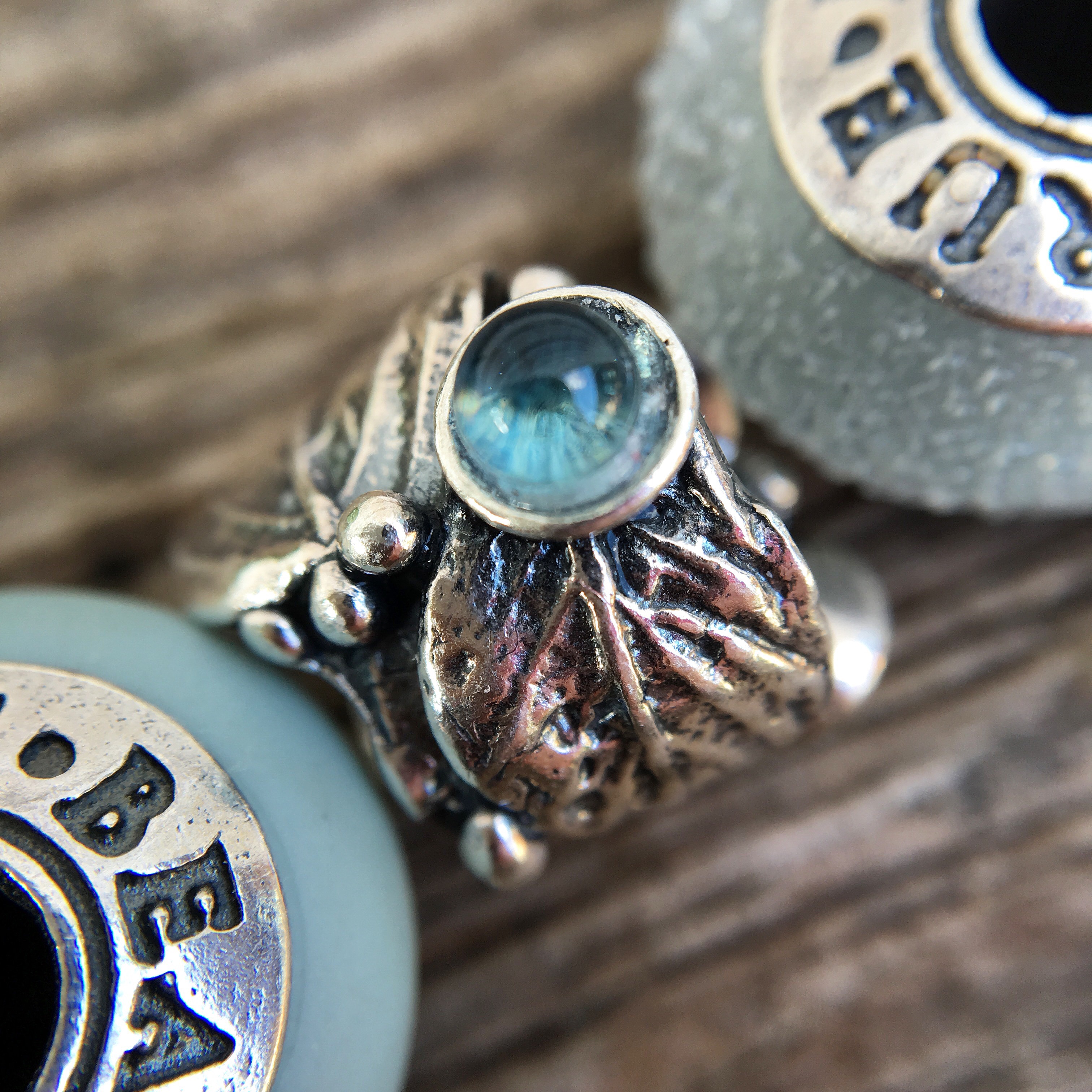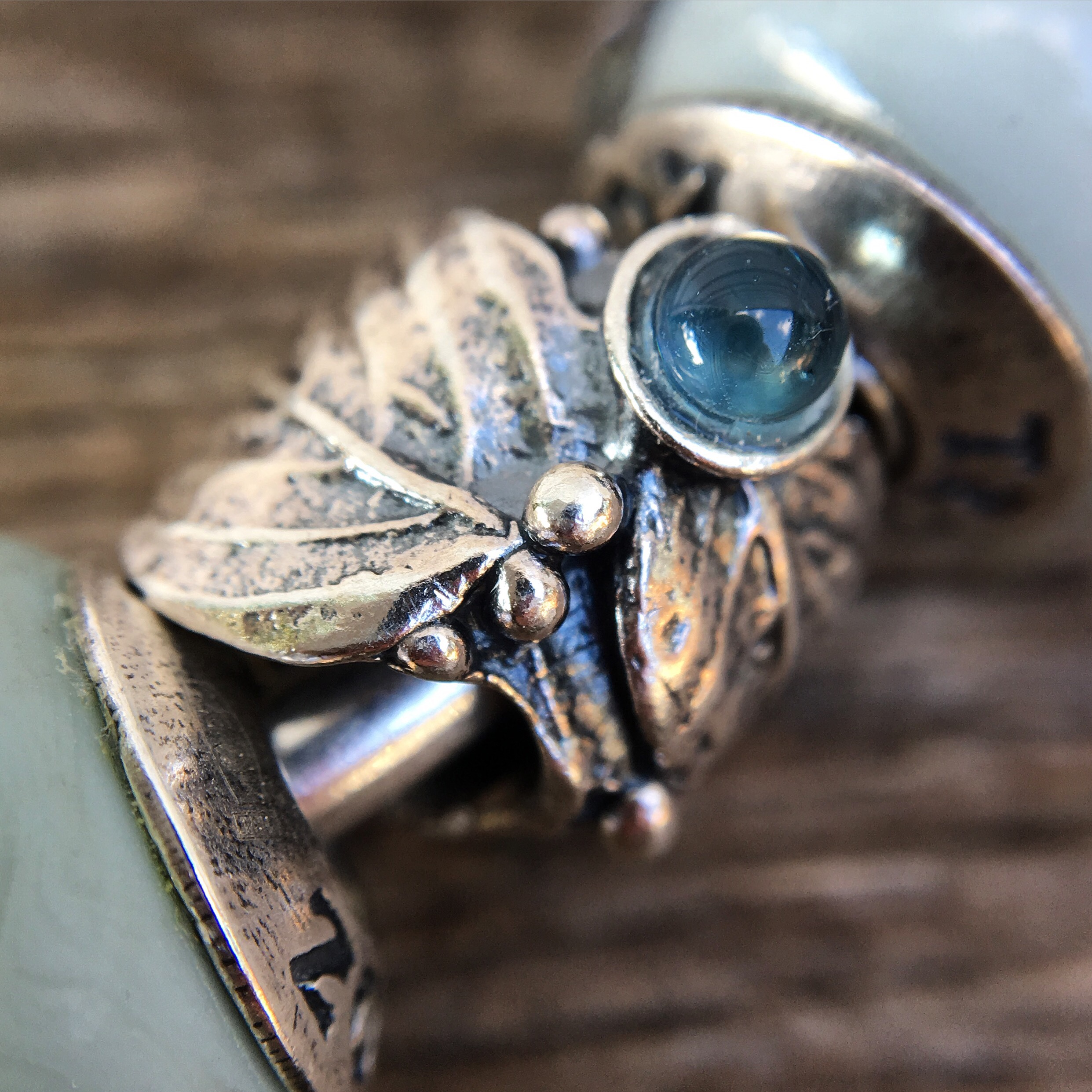 Morning Dew is a silver leaf, wrapped around, with two glass dew drops.