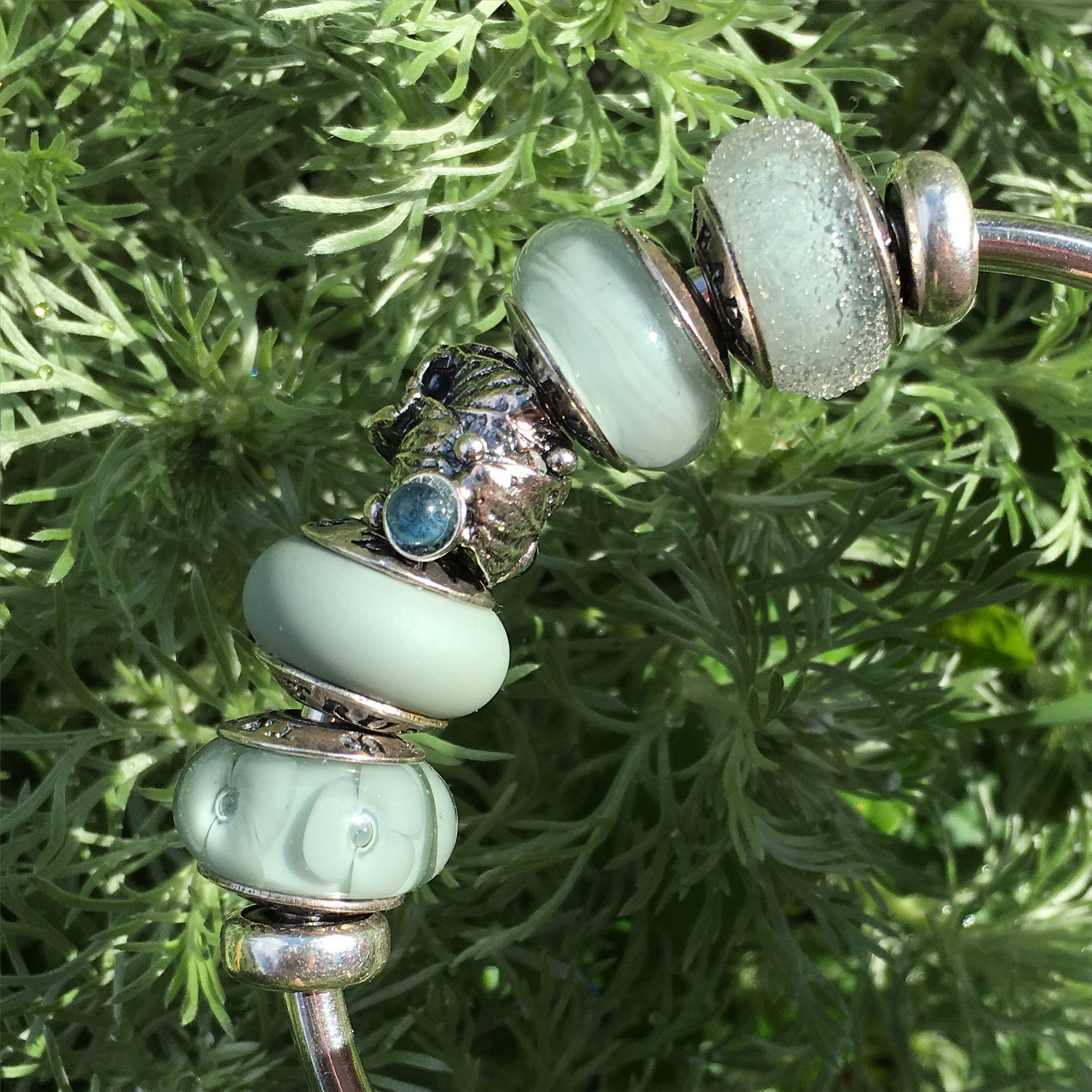 But here I’m wearing it just with one other bead, a True Taste Blue Mist. I tried it between two glass beads and didn’t think it worked. I think it might also look good just all by itself!