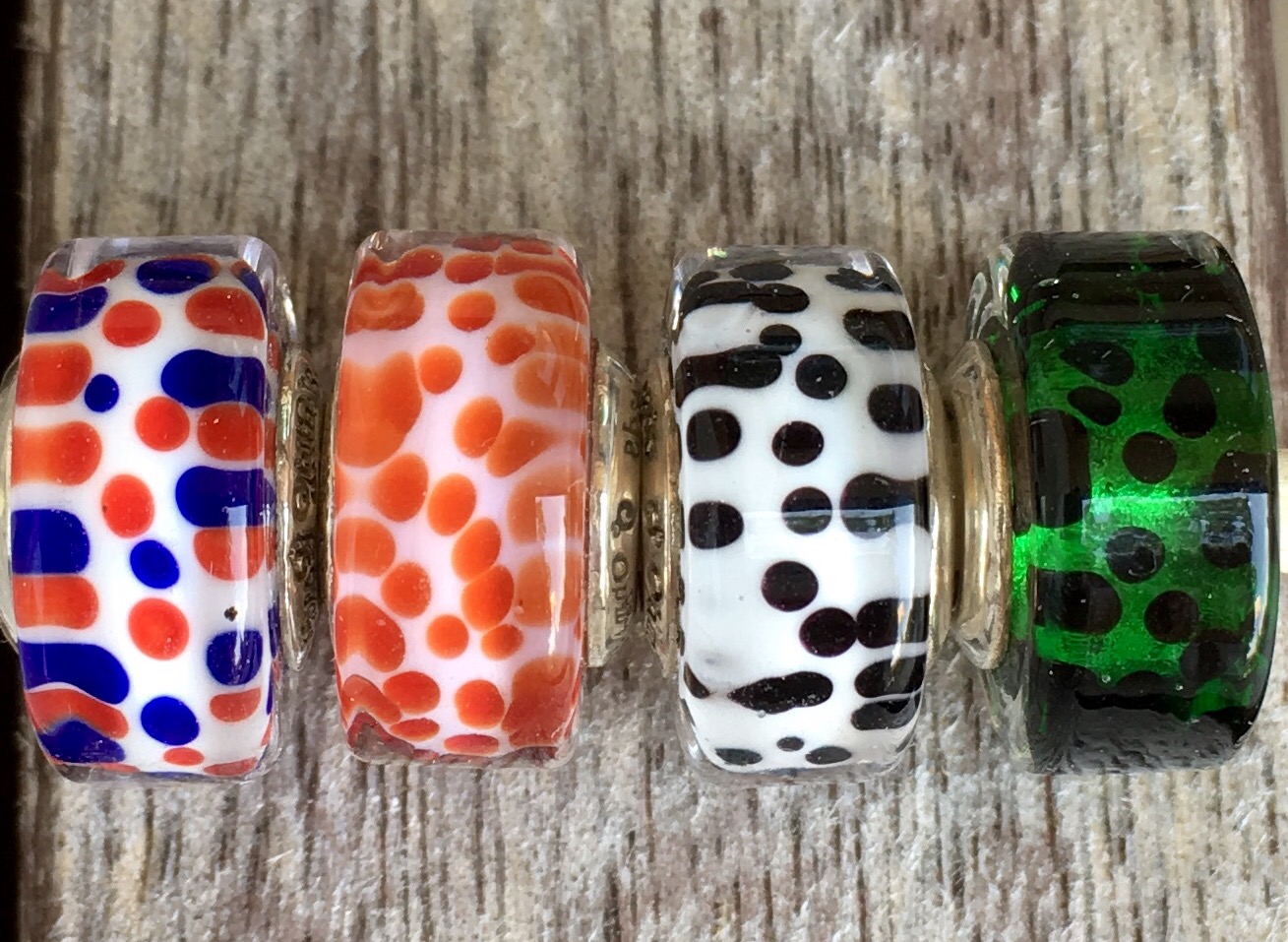 Ohm Beads have made several beads with dots, recently. The three beads on the right are from Animal Aptitude.