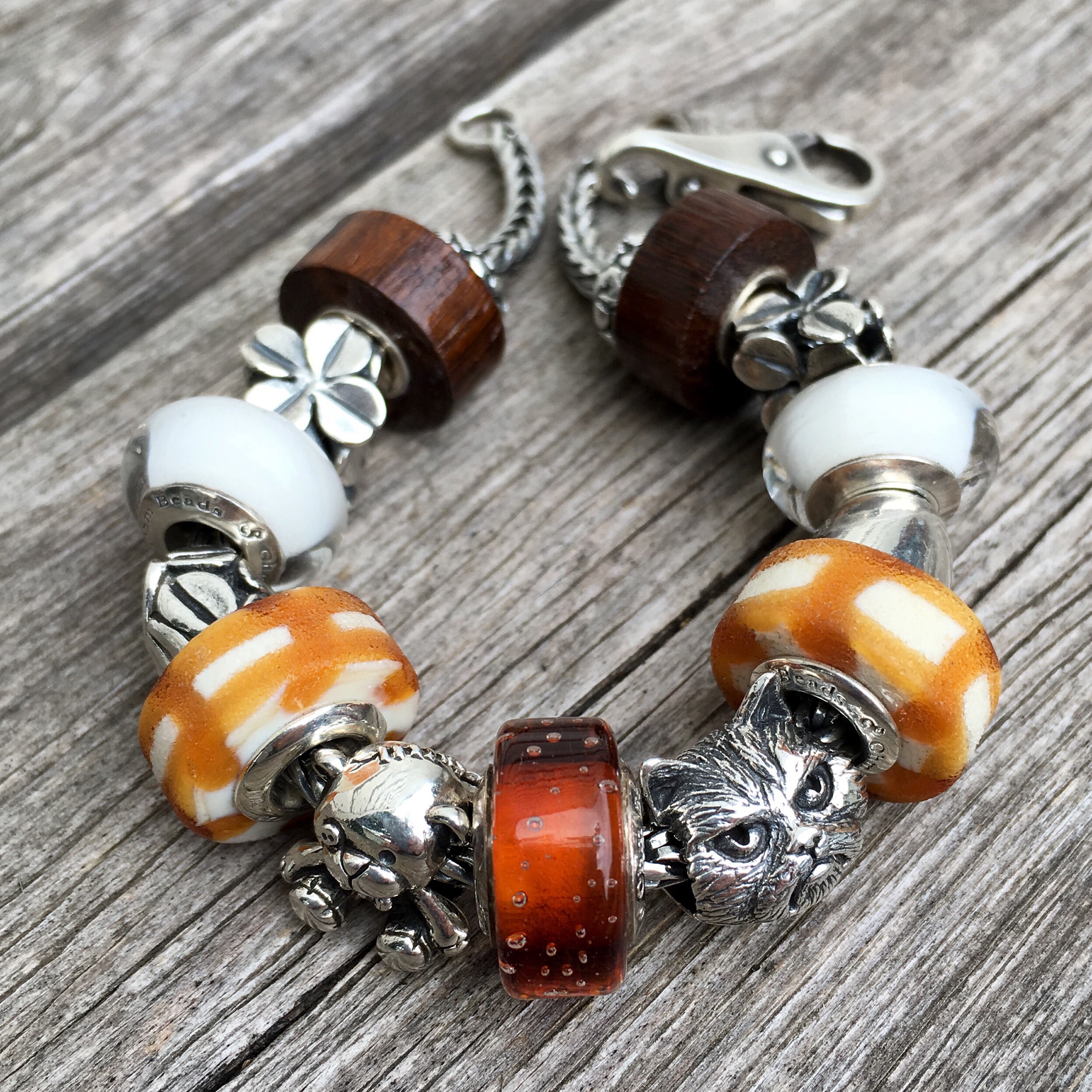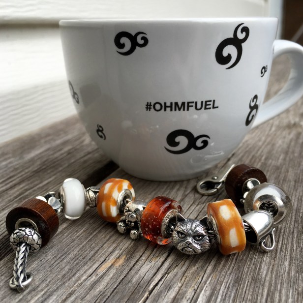 I also tried a larger bracelet and put on Grumpy Cat, as one could say they might feel grumpy if they don’t get their morning coffee. The Hug Me teddy bear will be featured tomorrow on the blog. And yeah, that’s two clover beads in there as I won a Lucky Friends Bracelet after doing a Trollbeads survey! I gave the lock to @mcctrish though. πŸ˜€