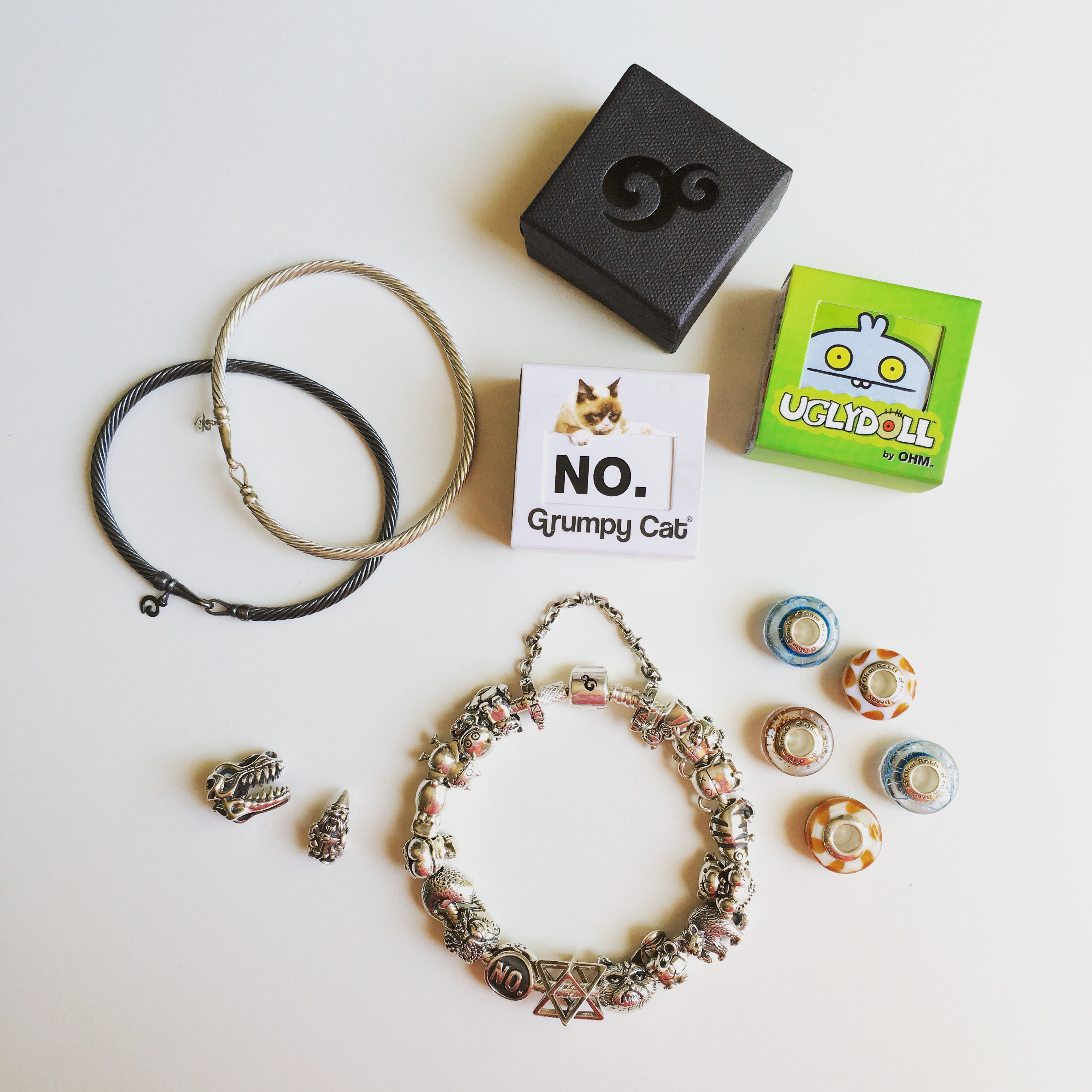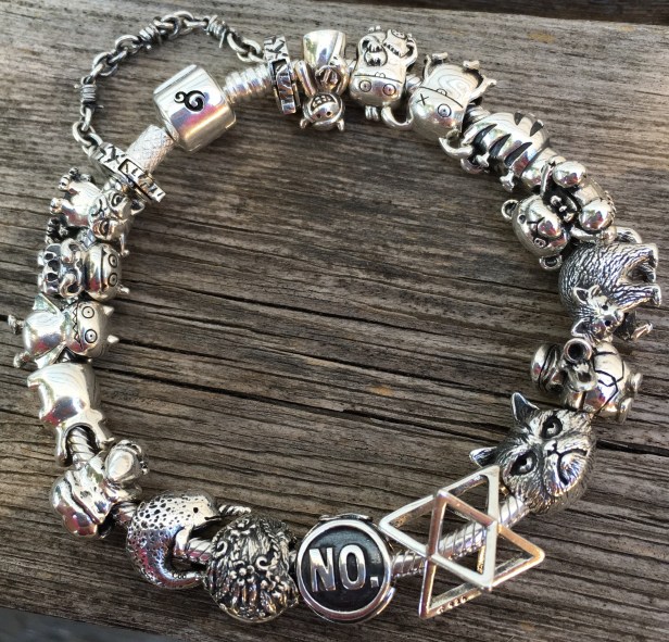 I think I’m going to keep this all silver Ohm Beads bracelet together for a while. I like the Merkaba as the focal point and then the Grumpy Cat beads, the Ugly Doll beads plus the others make for a fun bracelet.