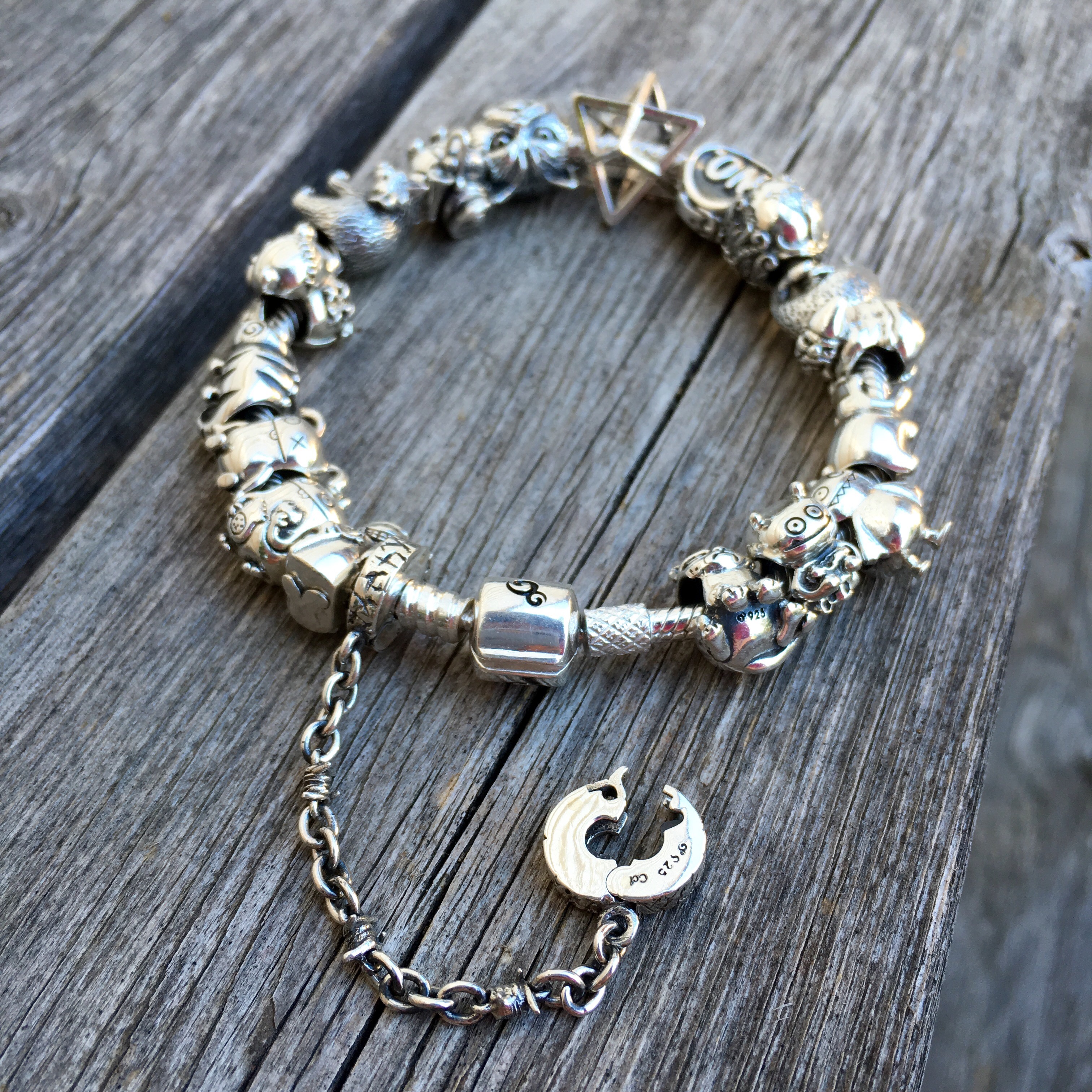 Ohm really does have a huge selection of quirky, fun beads, don’t they? Their safety chains are not something I would use, I am in the “don’t bother with them” camp, but they do help when putting heavy bracelets on and off, and these three are so clever and fun.