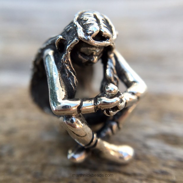 Ohm Beads has made a bead that is available exclusively at Perlen.  She is a sweet little elf who is looking intently at her bead and is called My Precious. I really like her pointy ears and the way her legs are folded up. She appears to be deep in thought as she looks at her bead.