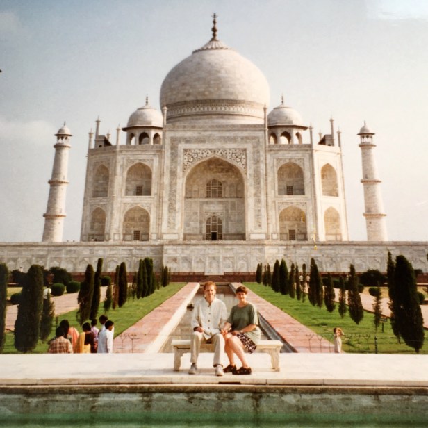 Anyway, India was absolutely overwhelming but incredible. We have never seen such poverty and such riches, with all the colours, sounds and smells one could imagine. Thank goodness we were on a tour. Now we will travel on our own, even going to China independently, but if we ever were to go back to India I would insist on a tour, as it’s just that daunting. We did the traditional Golden Triangle with stops in New Delhi, Agra and Jaipur. Here we are at the Taj Mahal. These are photos of my photos as this was before the days of digital photography. š