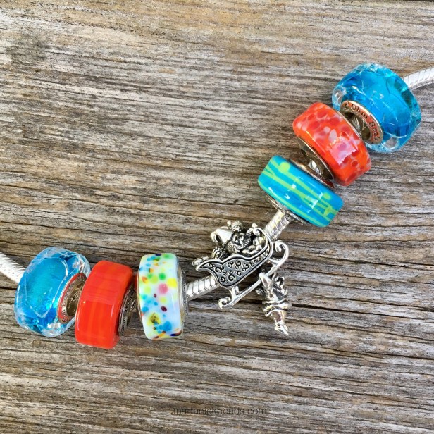 Oh my goodness, Martha! The Sugar Sleigh is amazing! I didn’t realize that Santa actually slides across the rails of the sleigh! I am sure that your students were very fascinated and amused by your bead! I also love the Confetti Upchuck and the Thames bead! Beautiful bracelet combo!❤️😘