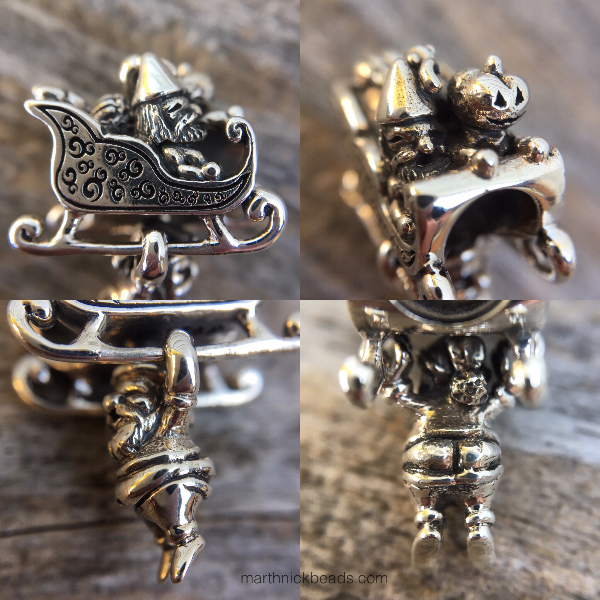 Ohm Beads has made the most delightful sleigh full of characters with a dangling Santa for the October Bead of the Month, or BOTM (pronounced bottom). In the words of Ohm…
