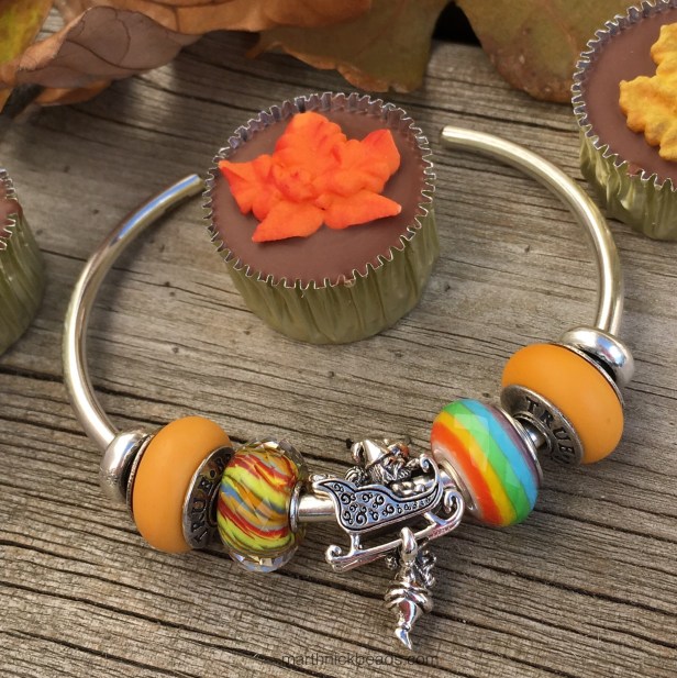 Lastly, I bought some little chocolate treats in Stratford, ON when I went to see Macbeth this week and thought they would go well with the Sugar Sleigh Ride 2.0. This bangle has two True Touch Pumpkin True Beadz plus the River of Life and Celebrate Life from Trollbeads.