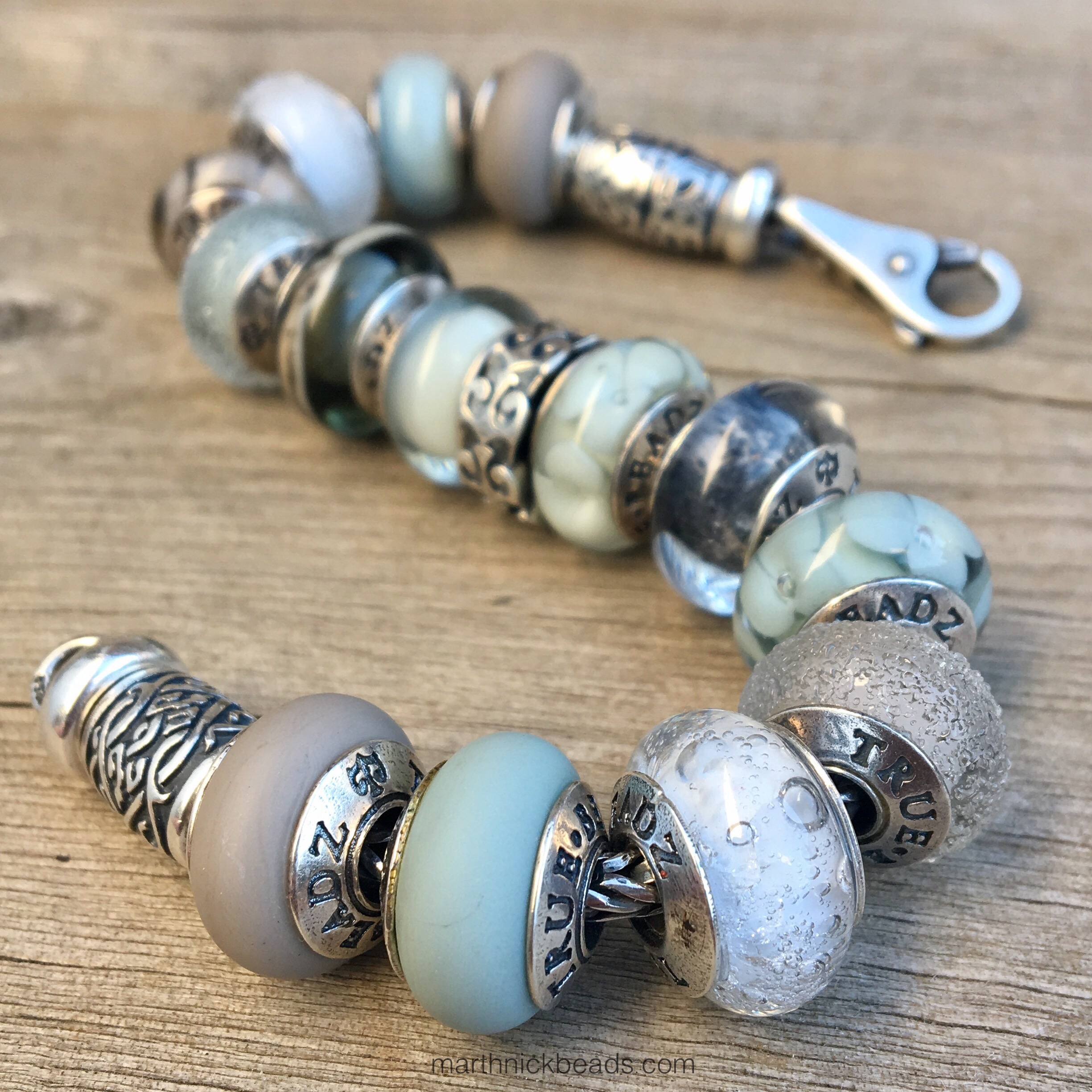 Next, this bangle uses some beads from the Linen shade, which I think is so beautiful and unique in the bead world. Left to right are True Touch Linen, Black Ice, True Taste Linen, True Touch Marmor and True Air Linen.