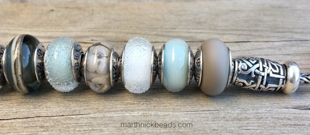 Blizzard looks to have similar colours to the Trollbeads Neptune’s Promise and I tried to tie them together with beads from the Castle Stone shade.