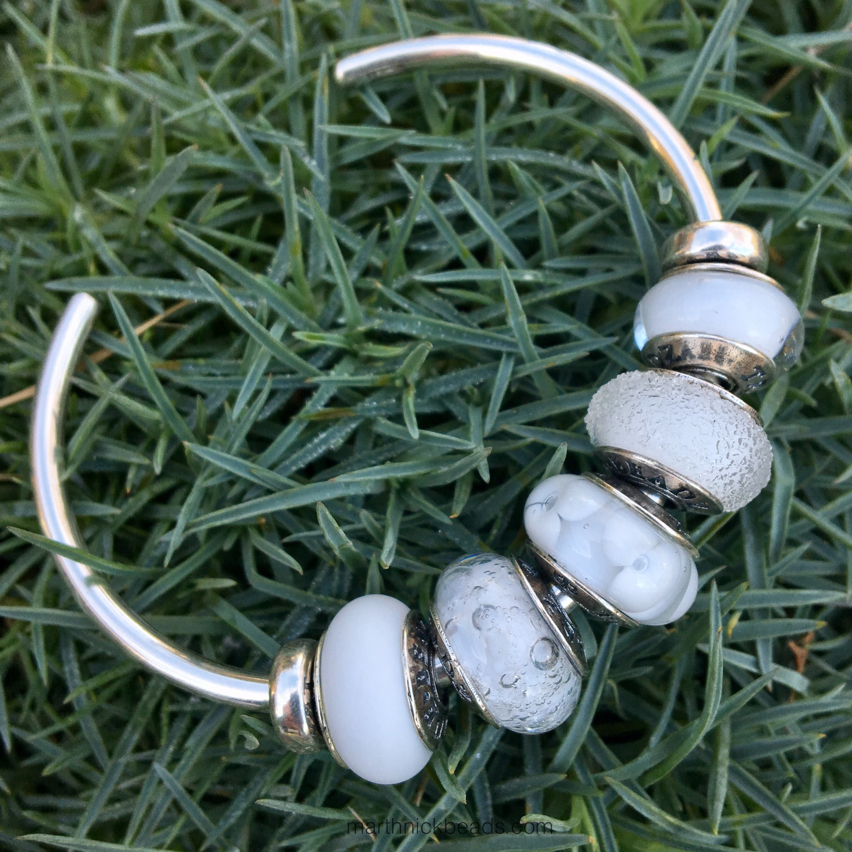 If there is anyone not too familiar with the True Beadz glass there are different styles. The beads in the photo below show the range with the Siberia shade (although Alchemy is called Snow). The Touch finish is matte. Alchemy is super bubbly and frothy. Blossom is flowers. Taste looks like ice or sugar and is a slightly raised texture. Air has the colour more at the core and is surrounded by a bit of clear glass.