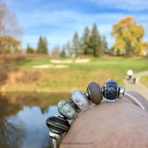It was super warm on Friday and I went golfing with the kids who didn’t have school that day and this was my bangle. Left to right are Black Ice, True Blossom Linen, Alchemy Snow, True Touch Castle Stone and Blizzard.